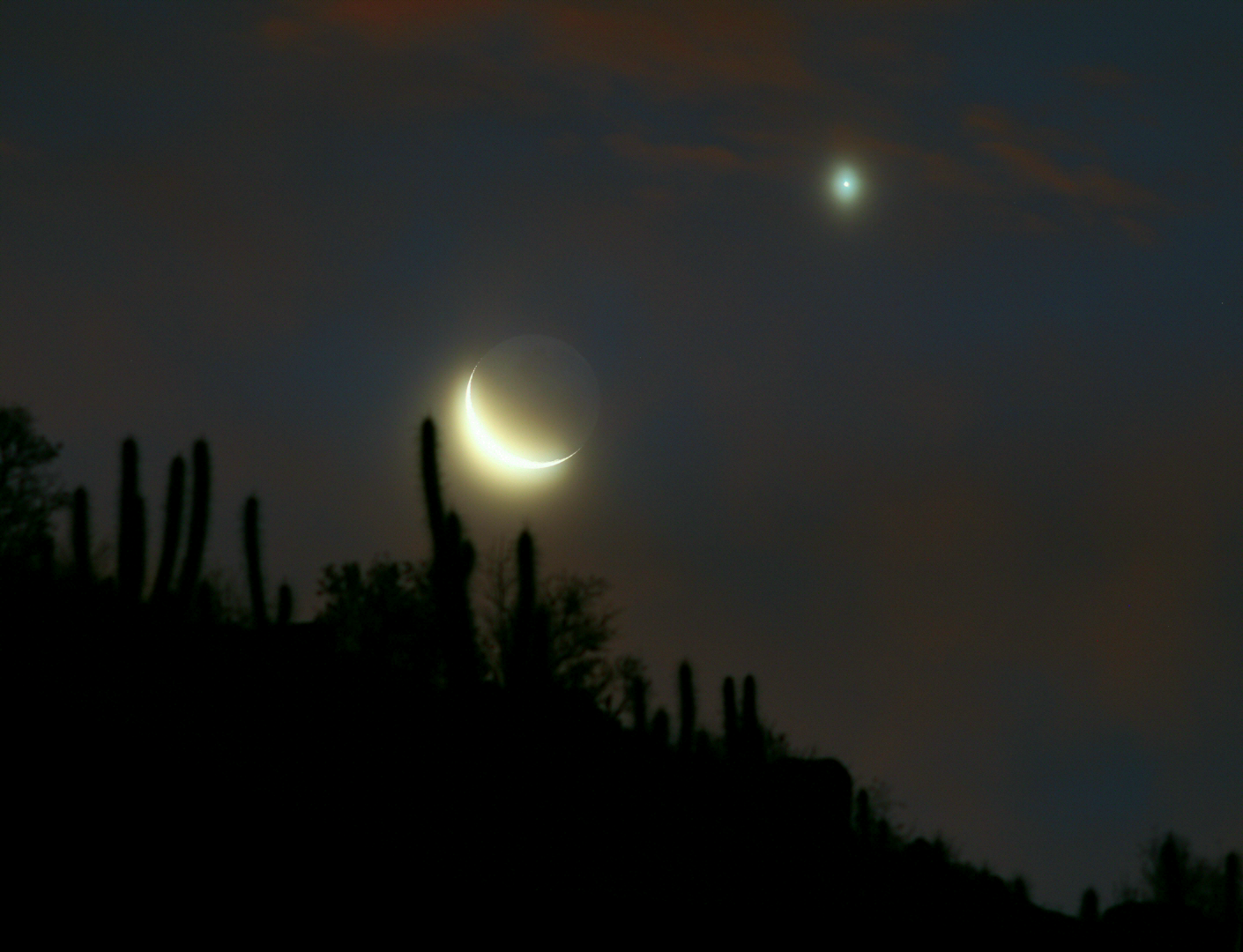 Enge Konjunktion (ca. 1,5°) zwischen Mond und Venus am 28. Dezember 2019