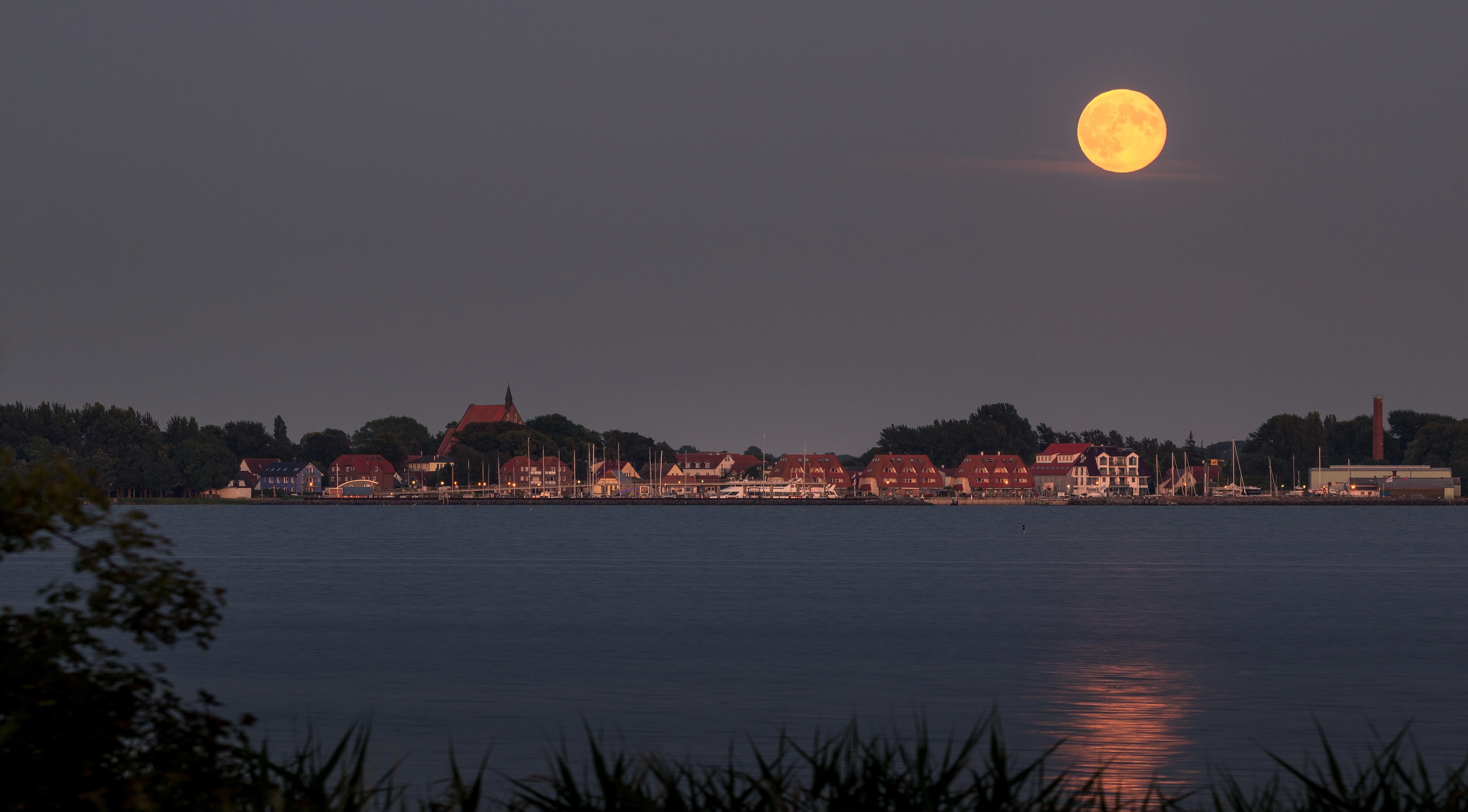 Leserbilder Astronomie: Mond über dem Hafen von Wiek, Rügen