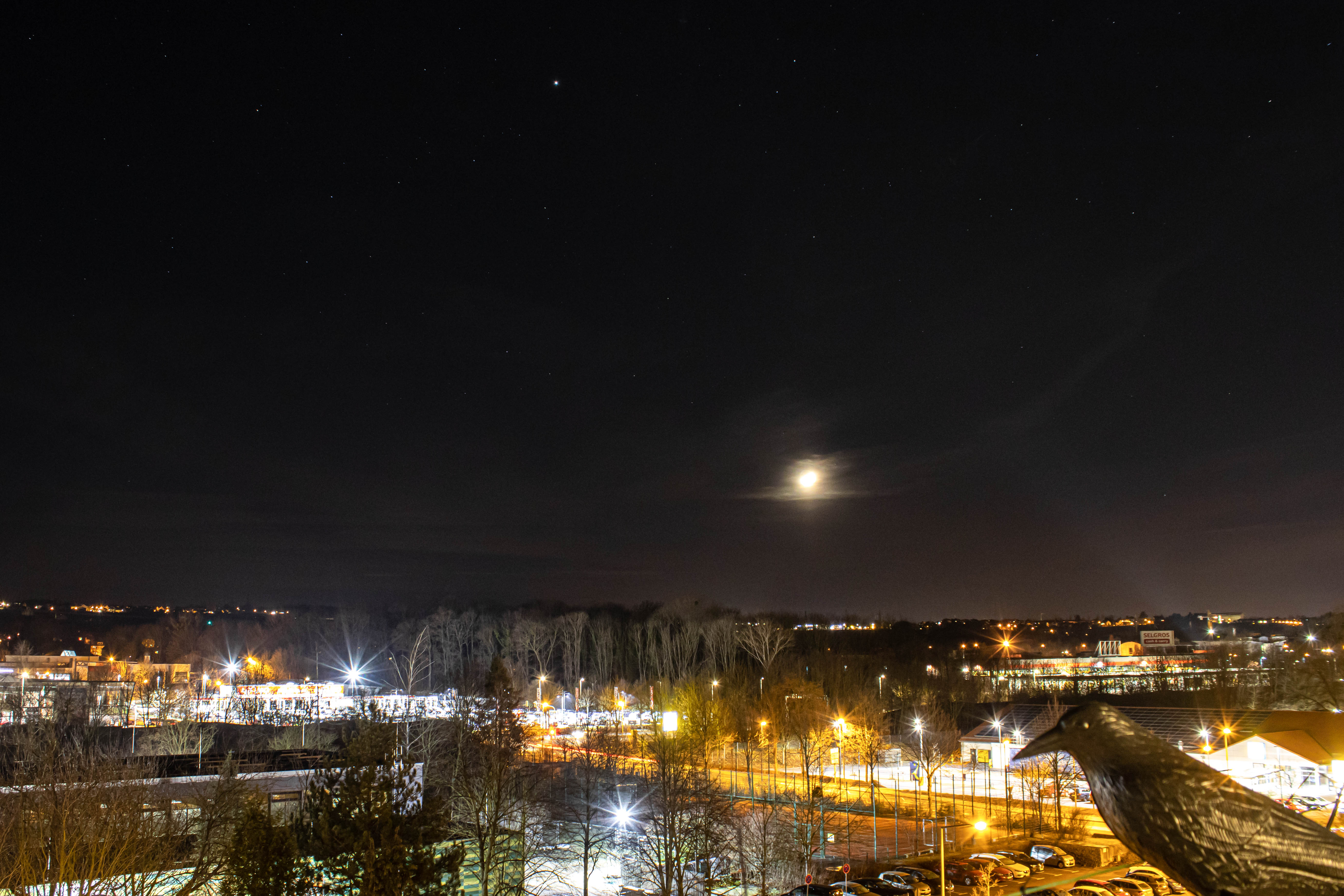 Der zunehmende Mond war zum Zeitpunkt noch 21,5 Grad vom Gasplaneten entfernt. Am Morgen des 15. Februar 2024 kam es dann zum monatlichen Treffen der Beiden (leider nicht sichtbar bei uns). Am Horizont gab es ein paar Schleierwolken.