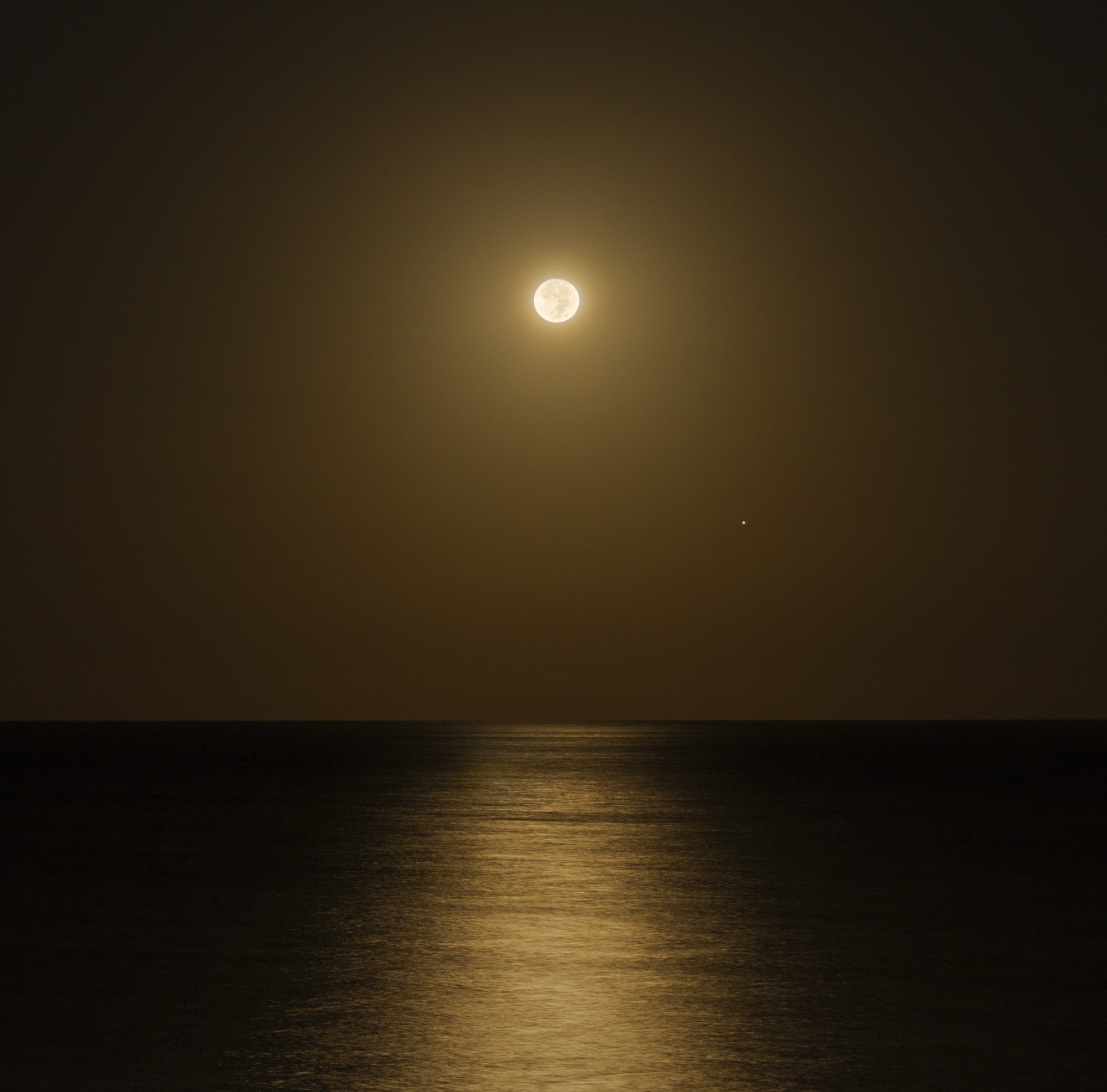 Dieser wundervolle Anblick von Mond und Jupiter bot sich während meines Urlaubs am Strand von Elafonissi auf Kreta. Ein HDR aus drei Bildern.