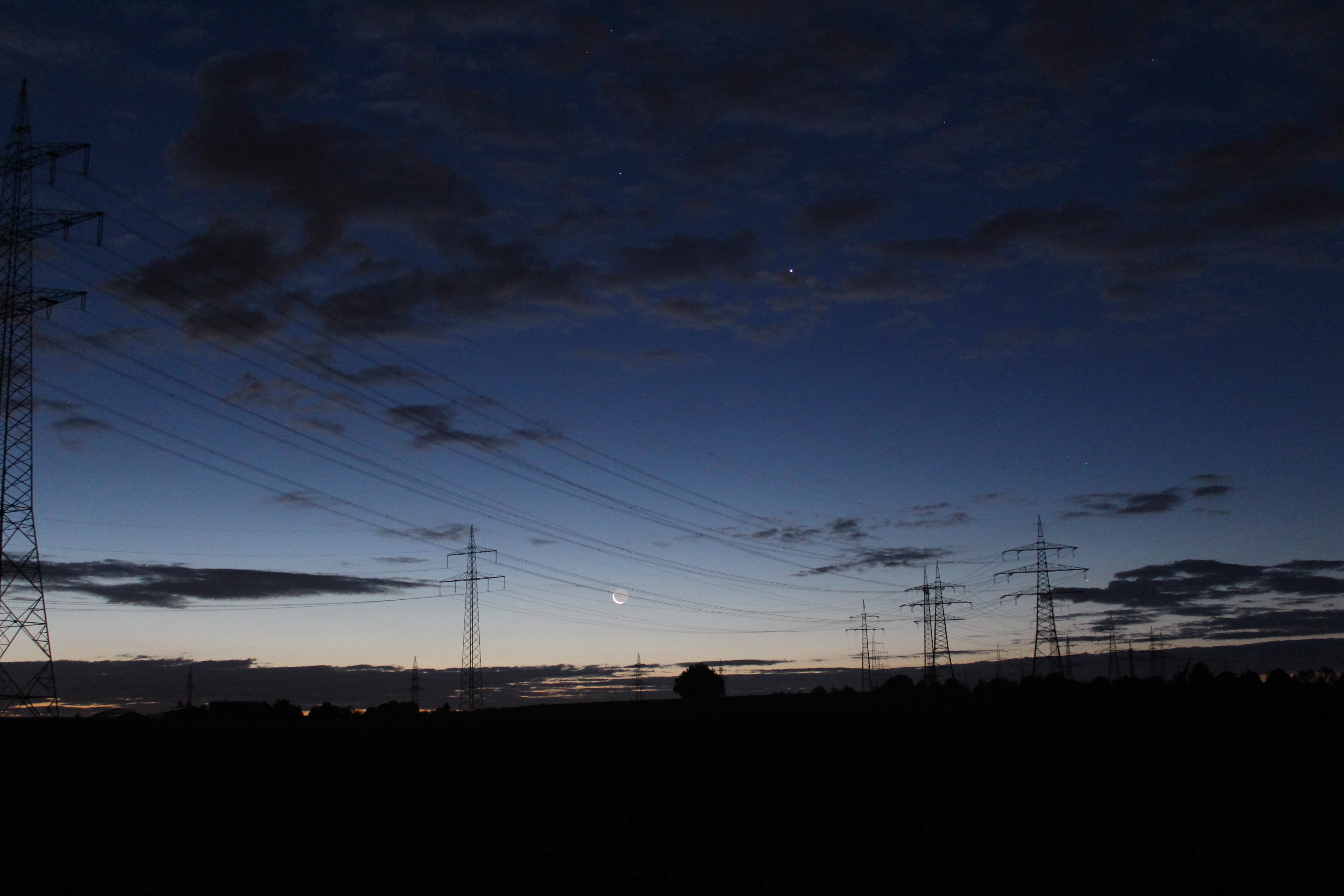 Mond und Venus am Morgenhimmel, aufgenommen zwischen Freiberg und Ludwigsburg.