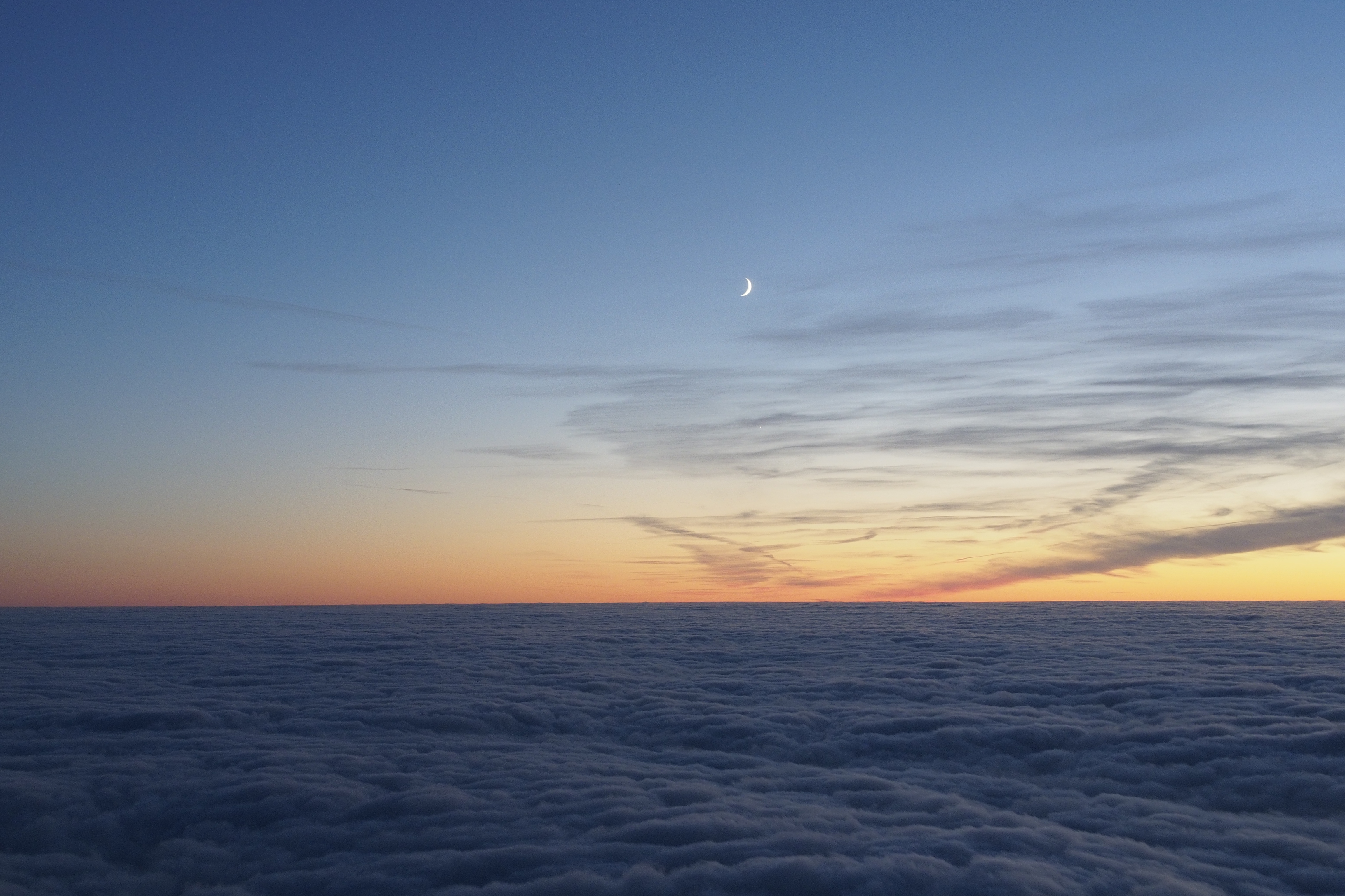 Deutschland lag unter einer Hochnebeldecke, nur in einzelnen Höhenlagen oder aus dem Flugzeug (hier ein A320) gelang der Blick auf die Konjunktion von Mond und Venus.