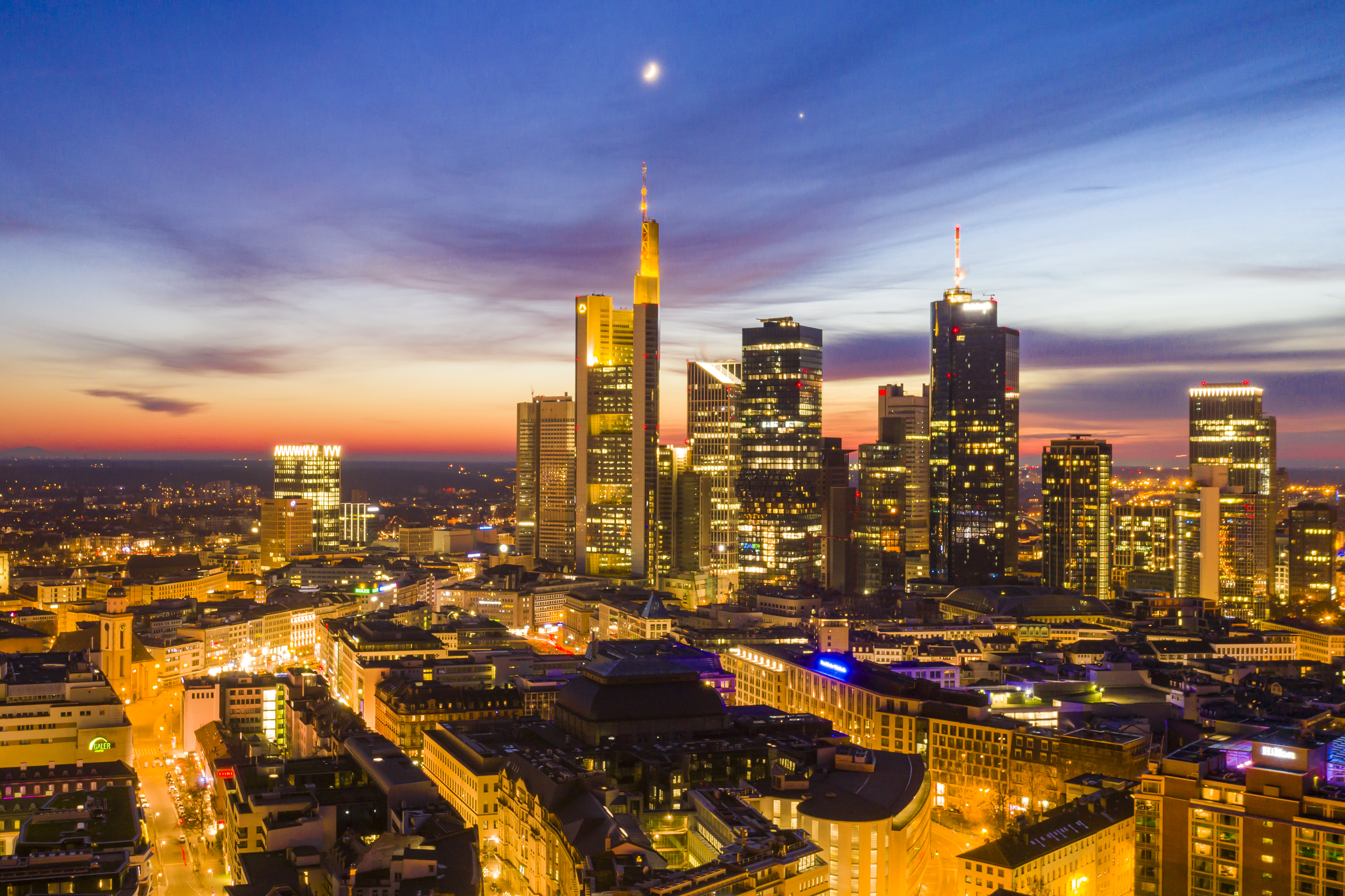 Konjunktion von Mond und Venus über Frankfurt am Main, Drohnenfoto mit DJI Mavic 2 Pro