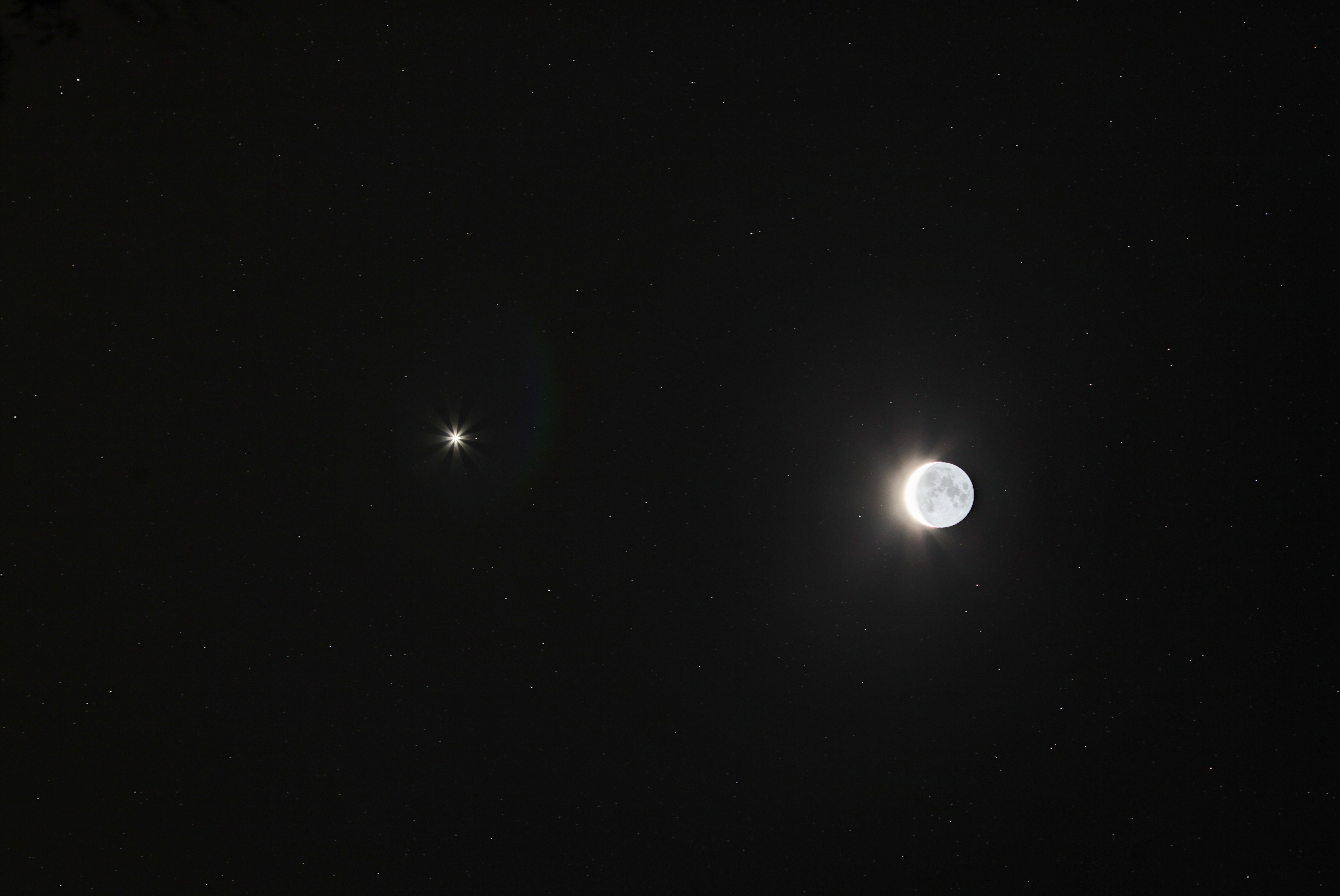 Am frühen Morgen des 24. Juni standen Mond und Venus in Konjunktion. Dieses Foto aus Südafrika ist ein Komposit aus vier Belichtungen, um sowohl Sterne als auch das Mondgesicht zu zeigen.
