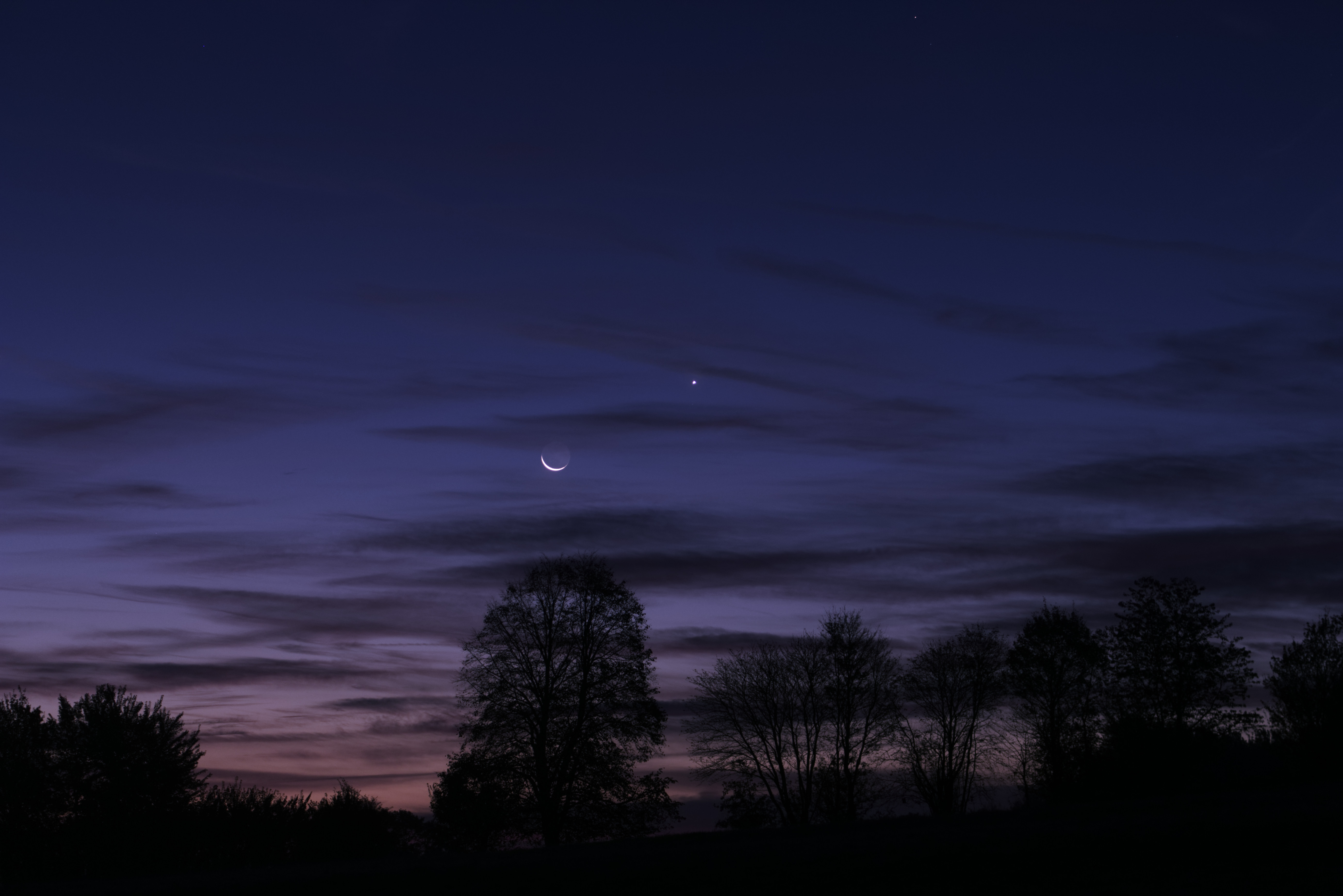 Mond und Venus in der Morgendämmerung; ohne Nachführung; ISO 200; Blende 5,6