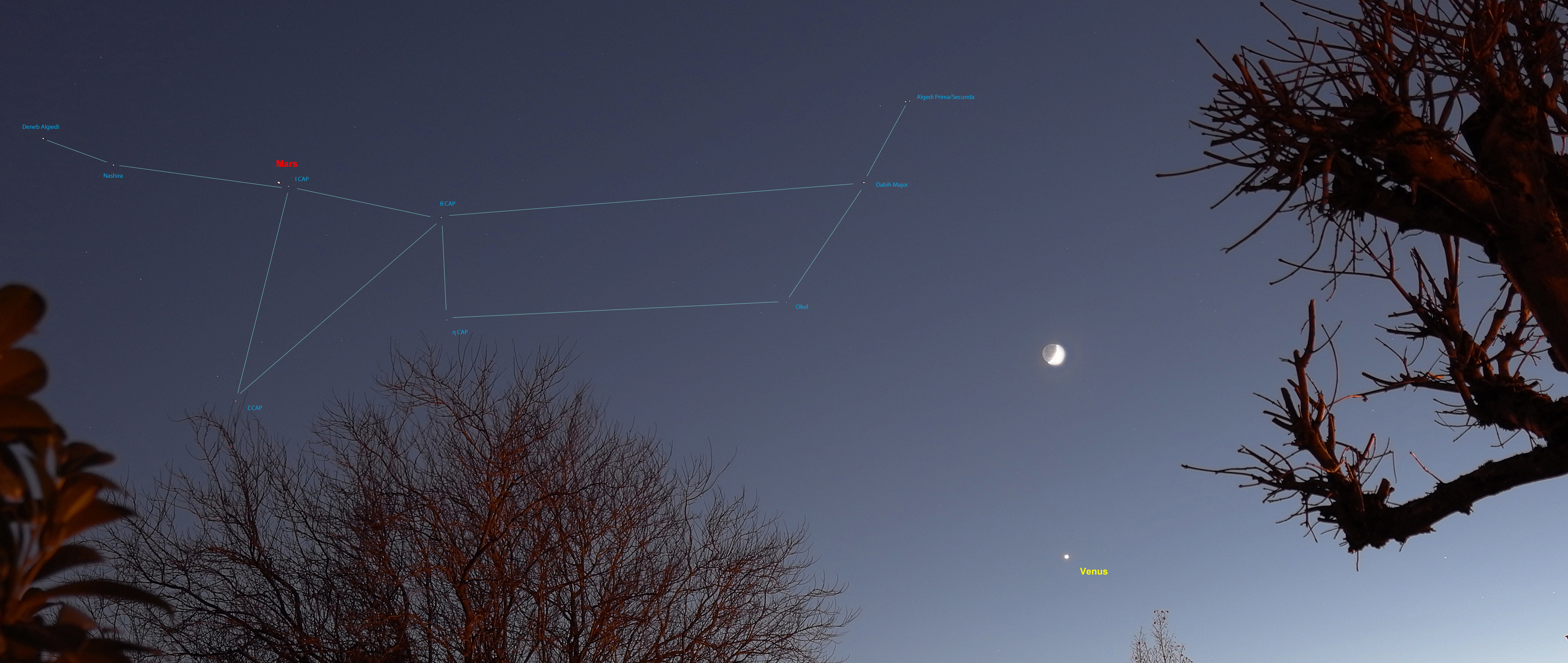 Die Begegnung Mond - Venus - Mars fand bei kristallklarem Winterhimmel im Steinbock statt.