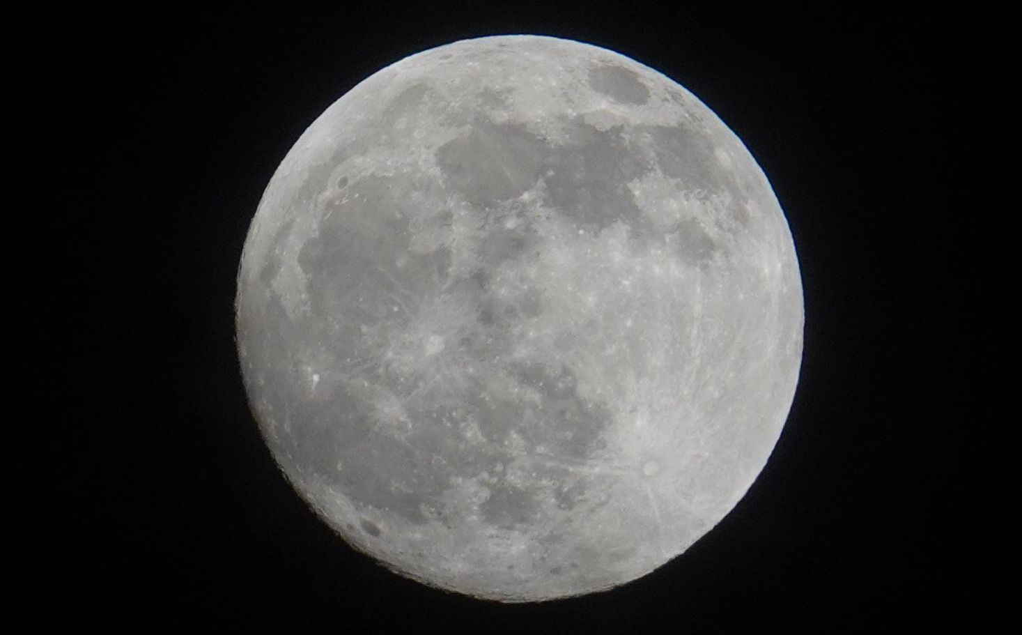 Mond von Mittwoch auf Donnerstag kurz nach Mitternacht. Kamera lag bereit, kurzer Gang auf den Balkon und einige Bilder gemacht. Nach SuW Vollmond 0:10. Siehe auch