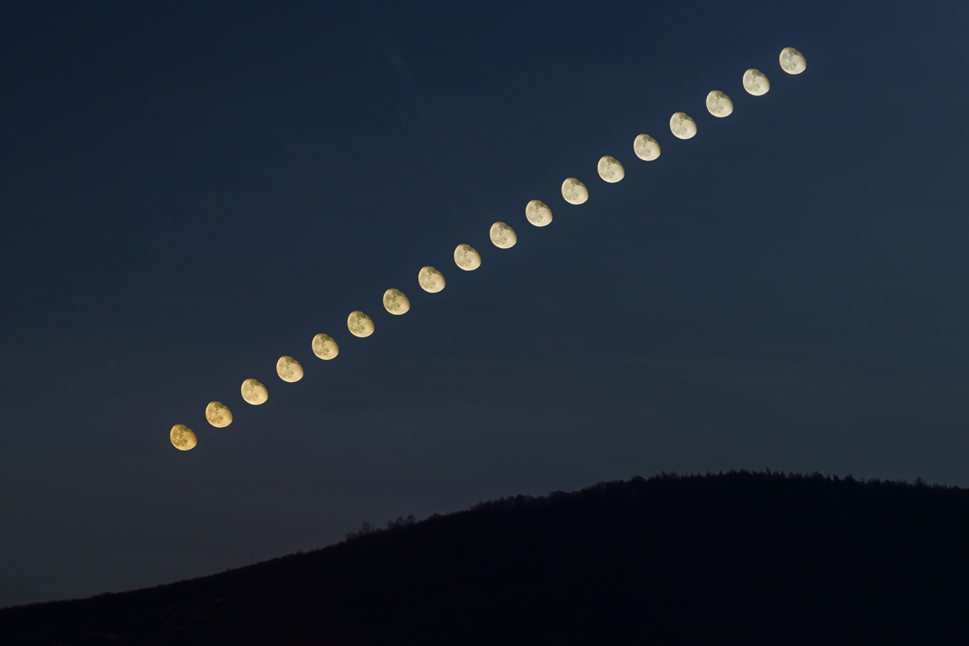| Belichtungszeit | 1/30 s für Mond, 30 s für Horizont und Nachthimmel; Intervall zwischen den Bildern jeweils 3 min |