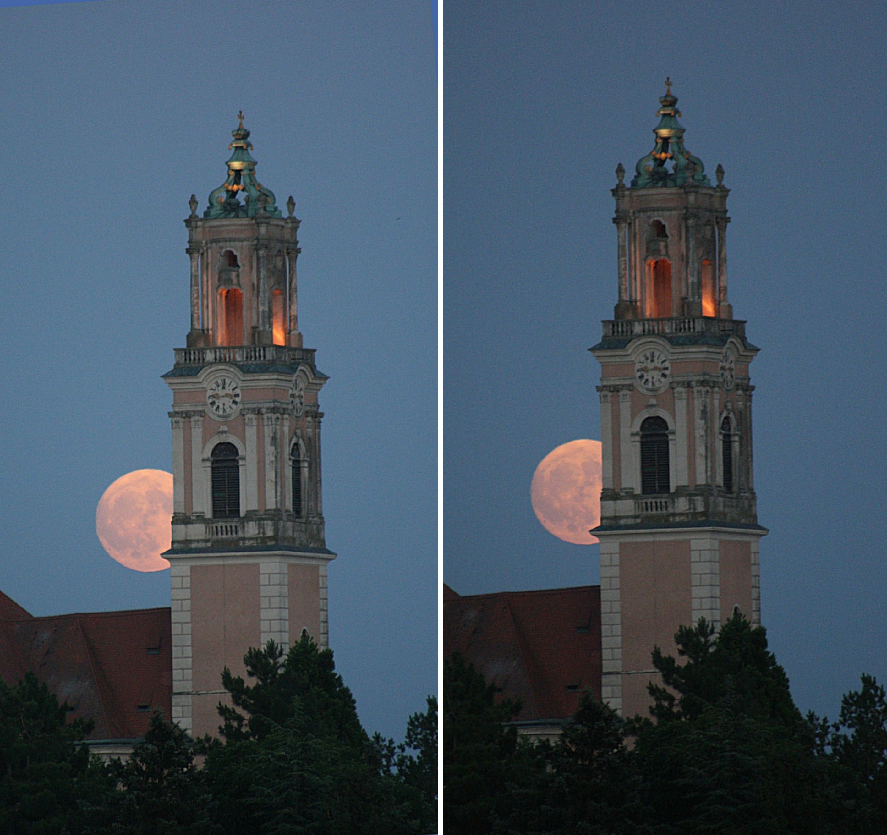 Schon lange hatte ich vor, einen Mondaufgang über dem Stift Herzogenburg mit seinem beleuchteten Turm in Niederösterreich zu beobachten und fotografieren. Am Sonntagabend, einer klaren warmen Sommernacht gelang dies nun.