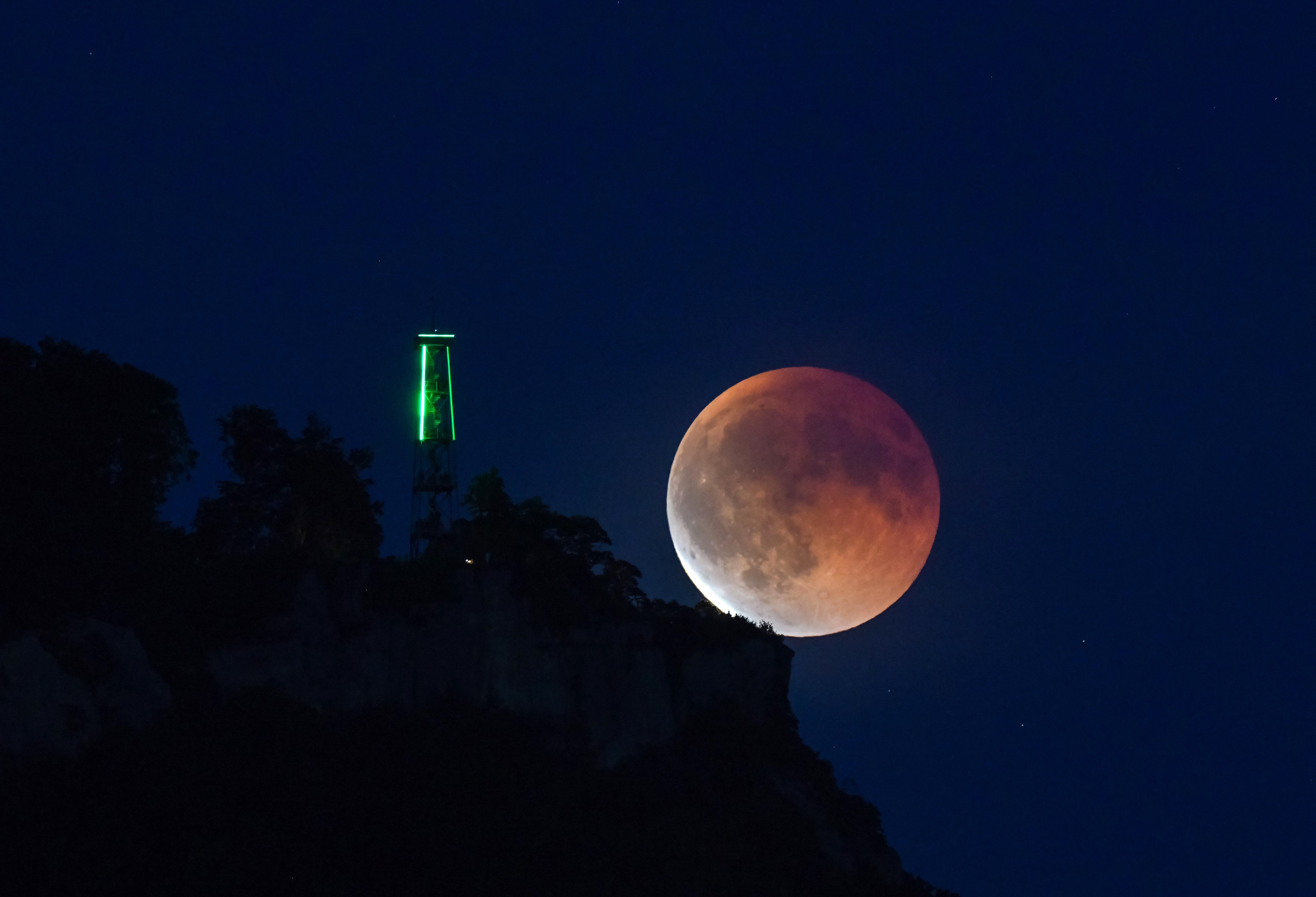 Leserbilder Astronomie: Mondaufgang zum Ende der Totalität beim Gempen Aussichtsturm (Kanton Solothurn/Schweiz)