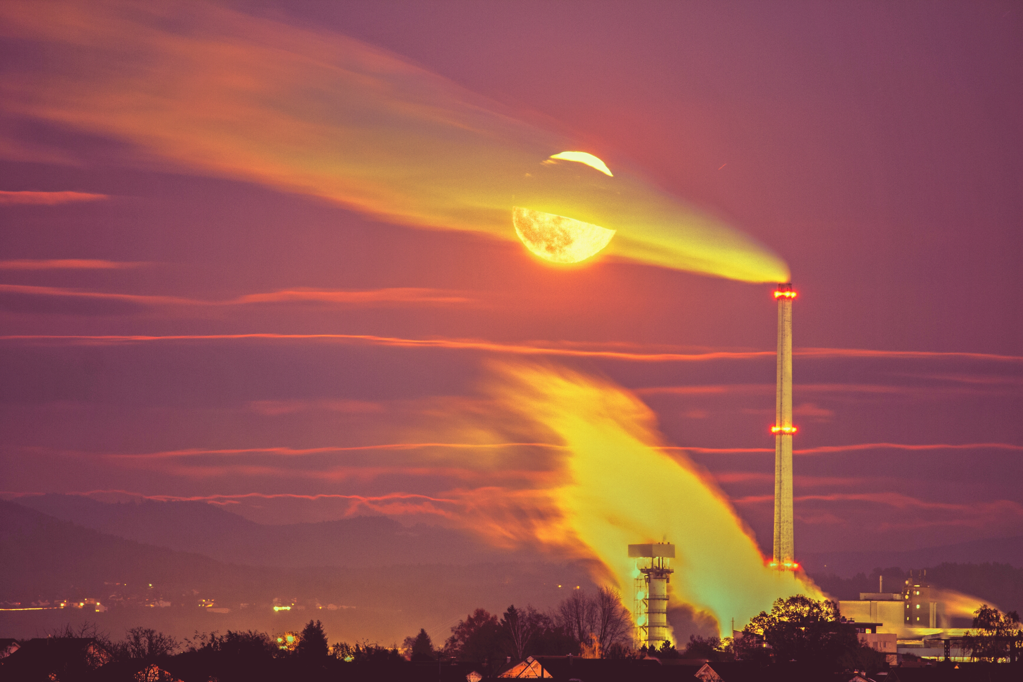 Hier noch ein "Supermond", der scheinbar durch die Dampfwolke einer Zuckerfabrik zieht. Zusammengesetzt aus zwei Fotos mit 1/100 Sekunde und 1,5 Sekunden Belichtungszeit.