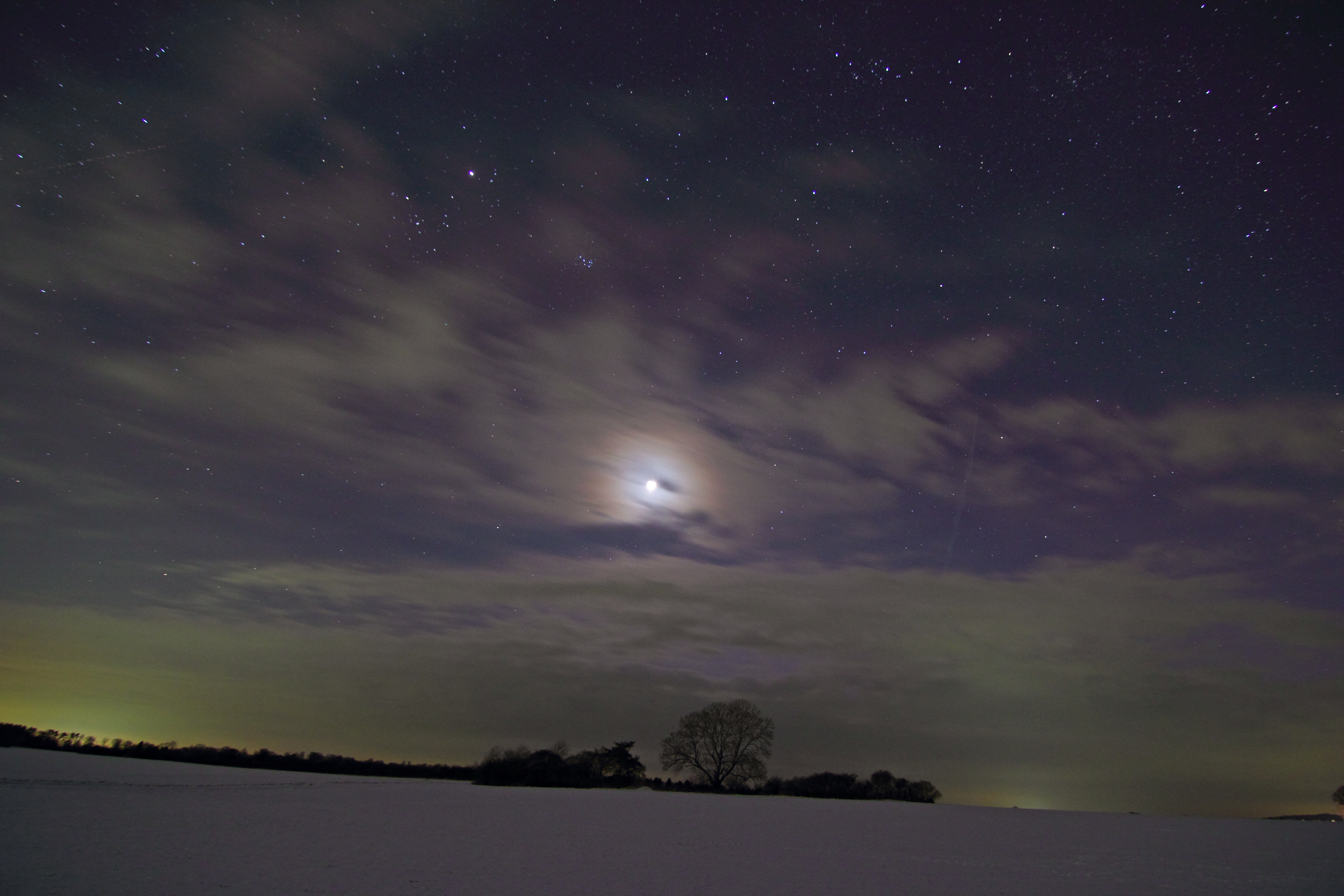 Eigenliches Ziel war der Komet PANSTARRS. Eine mit zunehmnder Dunkelheit immer größer werdende Wolkenbank verhinderte die Sichtung. Als Trostpflaster bildete sich eine recht hübsche Aureole um die vier Tage alte Mondsichel. In den wolkenfreien Bereichen zeigte sich zudem ein noch recht stattlicher Sternenhimmel.