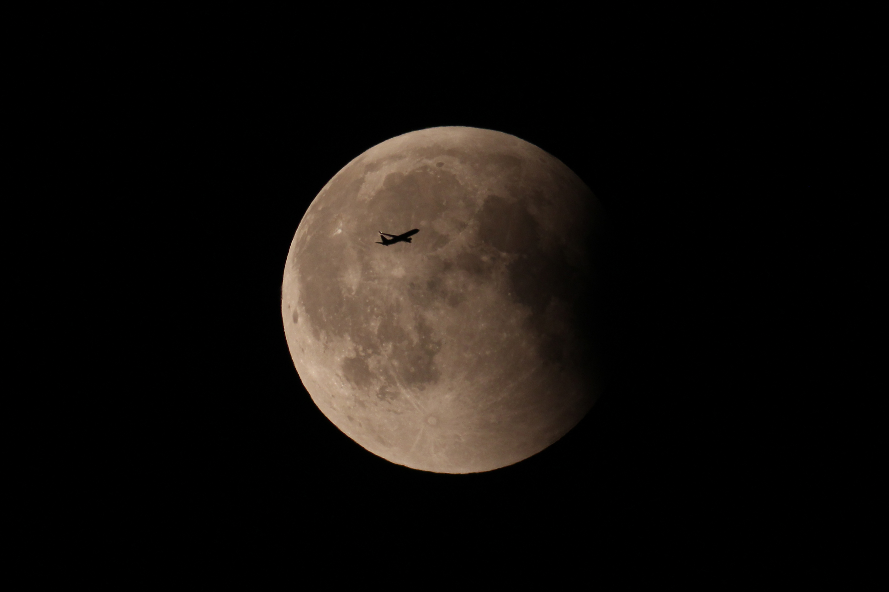 Endphase der Mondfinsternis mit Flugzeug