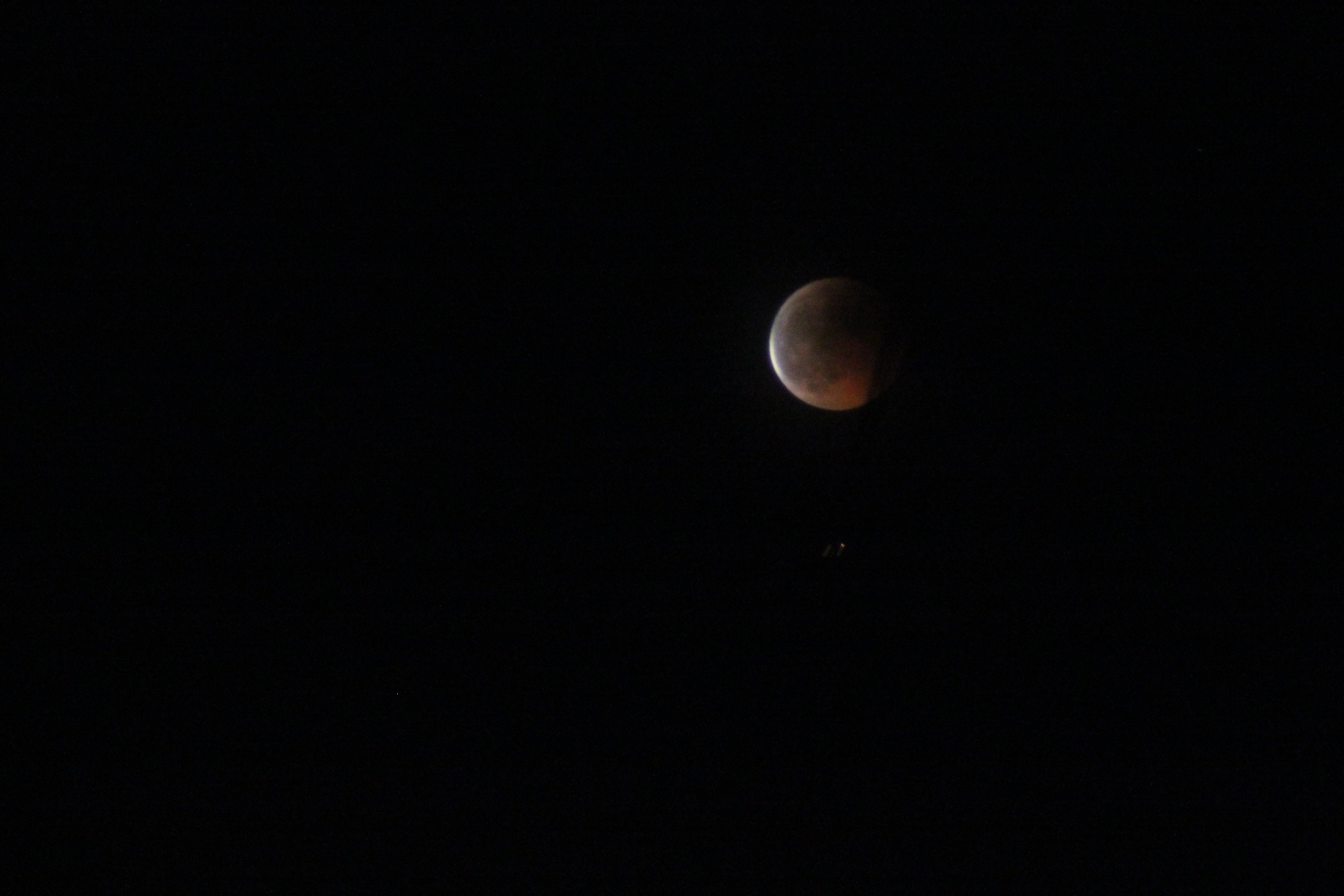 Erst als die totale Phase der Mondfinsternis am 15. Juni 2011 zu Ende war, ergaben sich Wolkenlücken, die das Fotografieren des Mondes erlaubten.