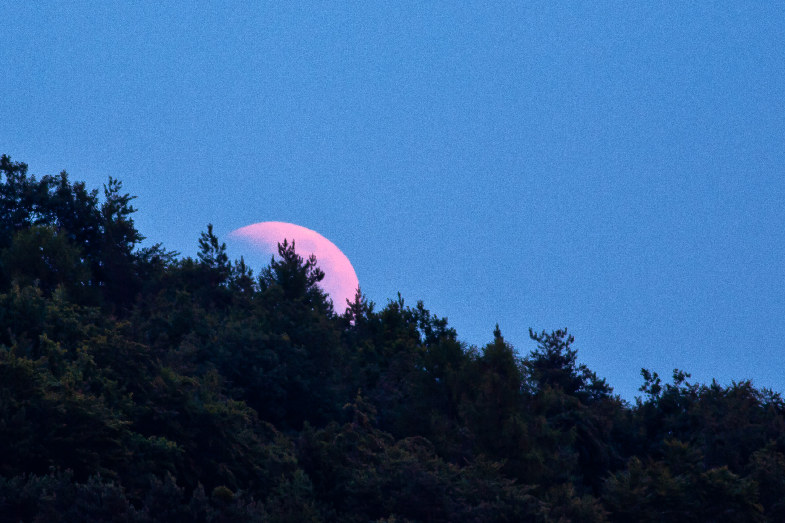 In Graz ging der Mond knapp vor 21 Uhr MESZ in der Abenddämmerung auf. Da die Verfinsterung noch nicht in die totale Phase übergegangen war, konnte man den Mond am Horizont gut erkennen. Wenig später nahm der Kontrast zum Hintergrund durch die Verdunklung des Mondes immer mehr ab, bis er beim Eintreten der Dunkelheit wieder zunahm – ein spannendes Schauspiel.