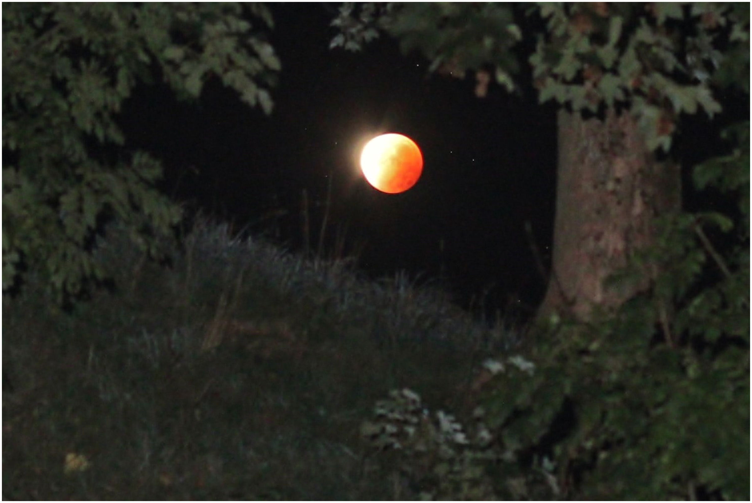 Auf der Suche nach einem ansprechenden Vordergrund für ein Mondfinsternisfoto fiel mir ein paar Tage vor dem Ereignis dieses nette Eckchen mit Blickrichtung Südwesten ins Auge. Eine leichte Aufhellung durch ein Blitzgerät machte schließlich auch den irdischen Vordergrund sichtbar.