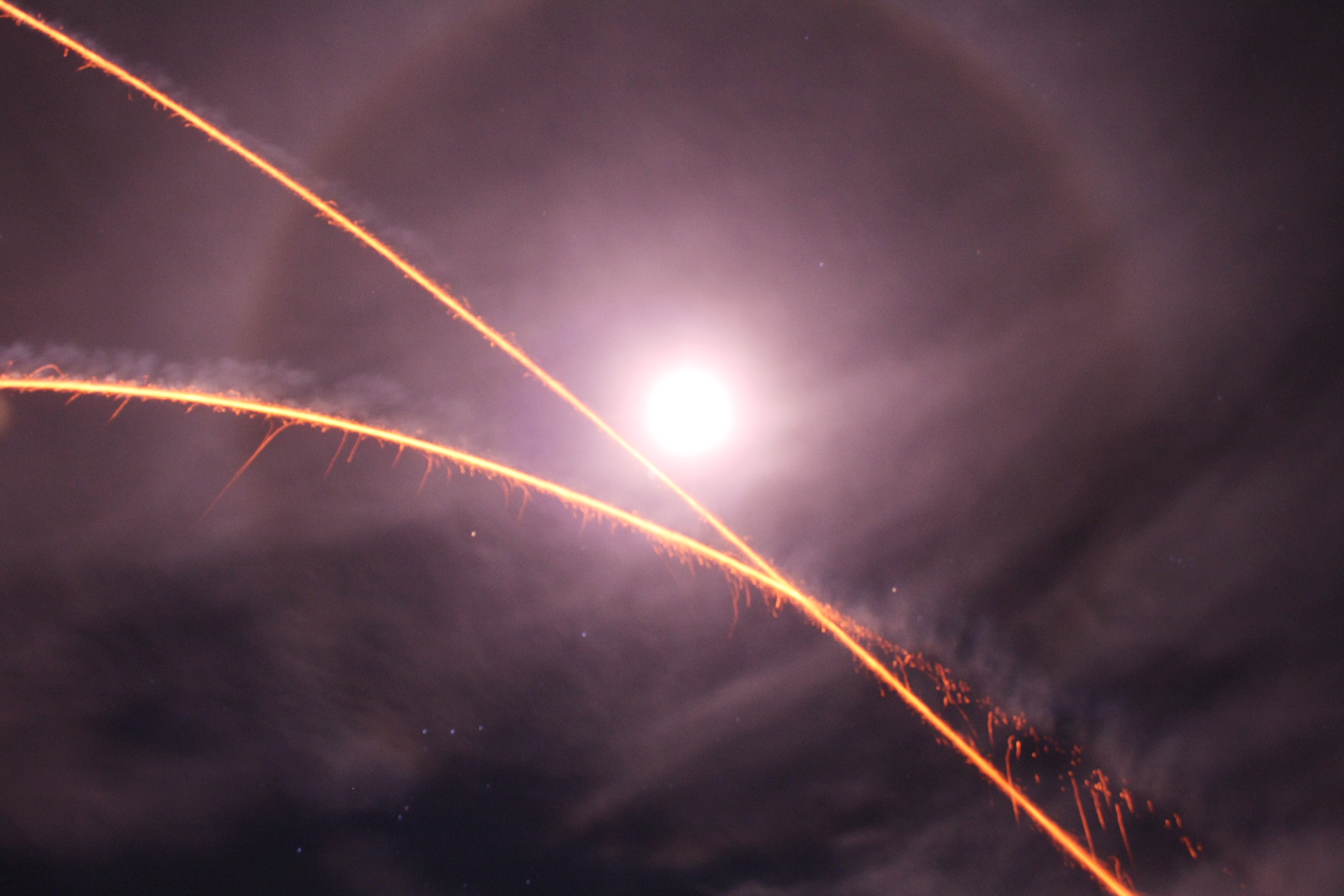 Leserbilder Astronomie: Mondhalo mit Feuerwerksraketenspur