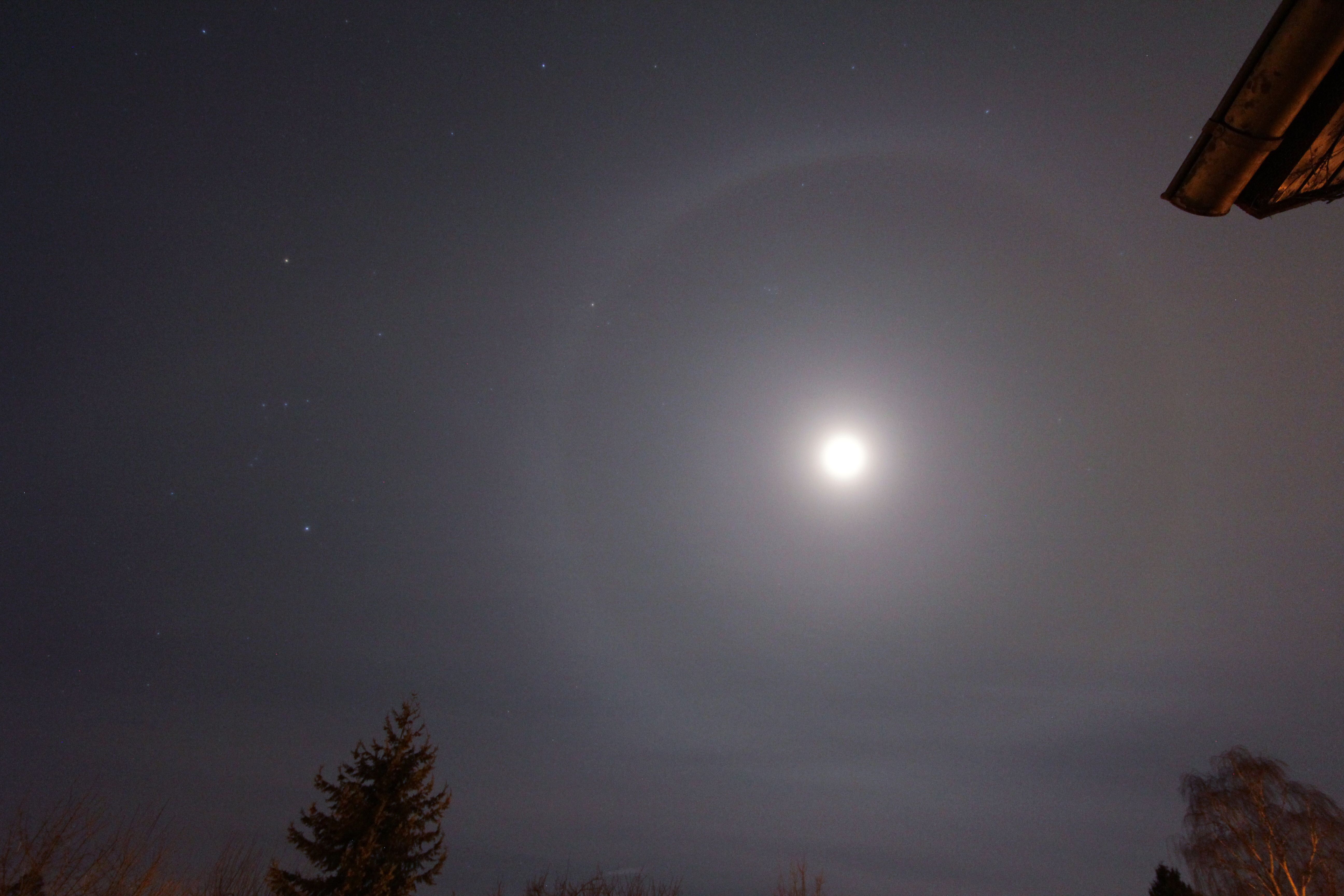 Eigentlich wollten wir die neue StarSense-Nachführung ausprobieren, aber stattdessen gab es einen tollen Mondhalo – trotz Halbmond