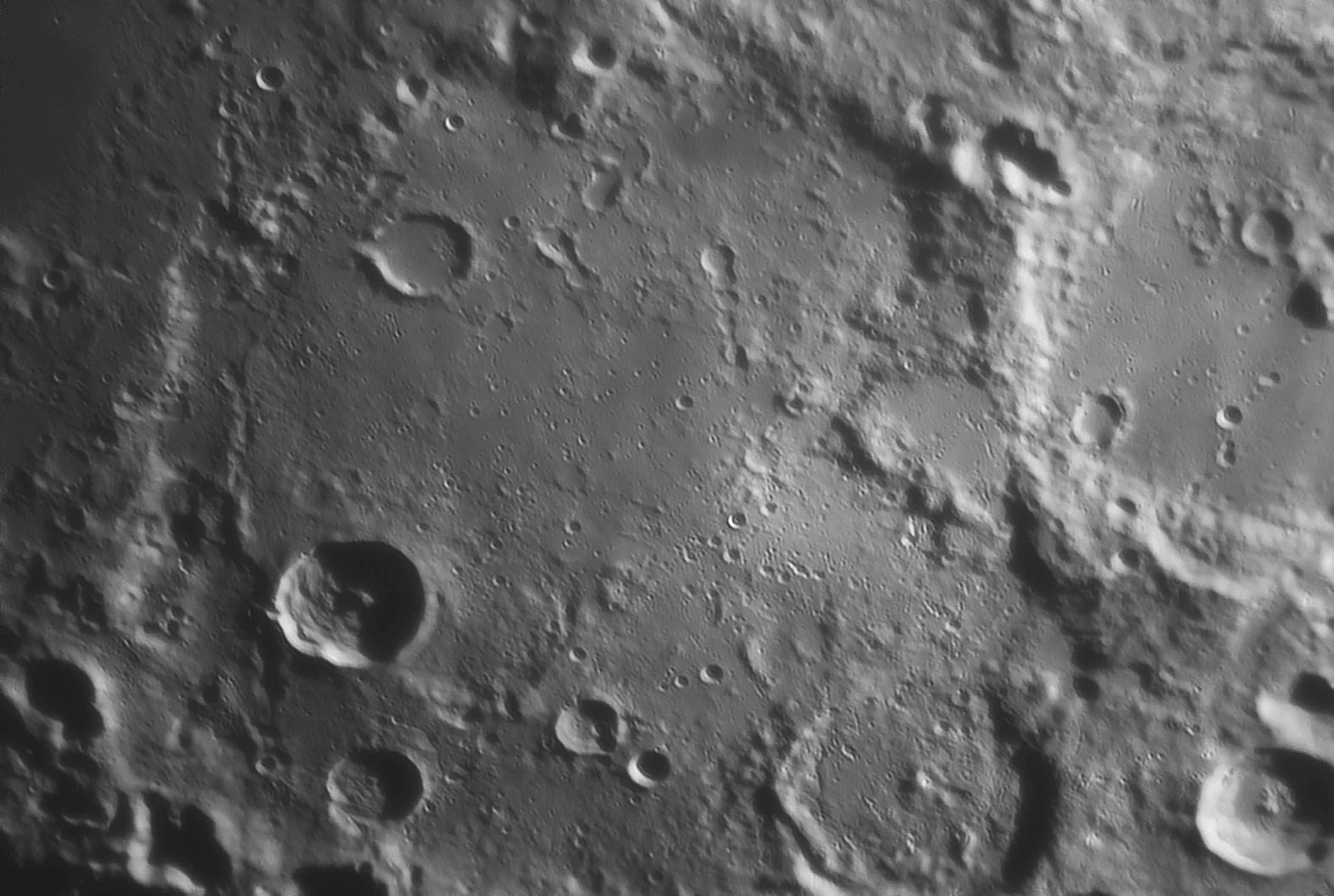 Erste ernsthafte Monddetailaufnahme mit dem 16-Zoll-Meade bei mäßigem Seeing.
