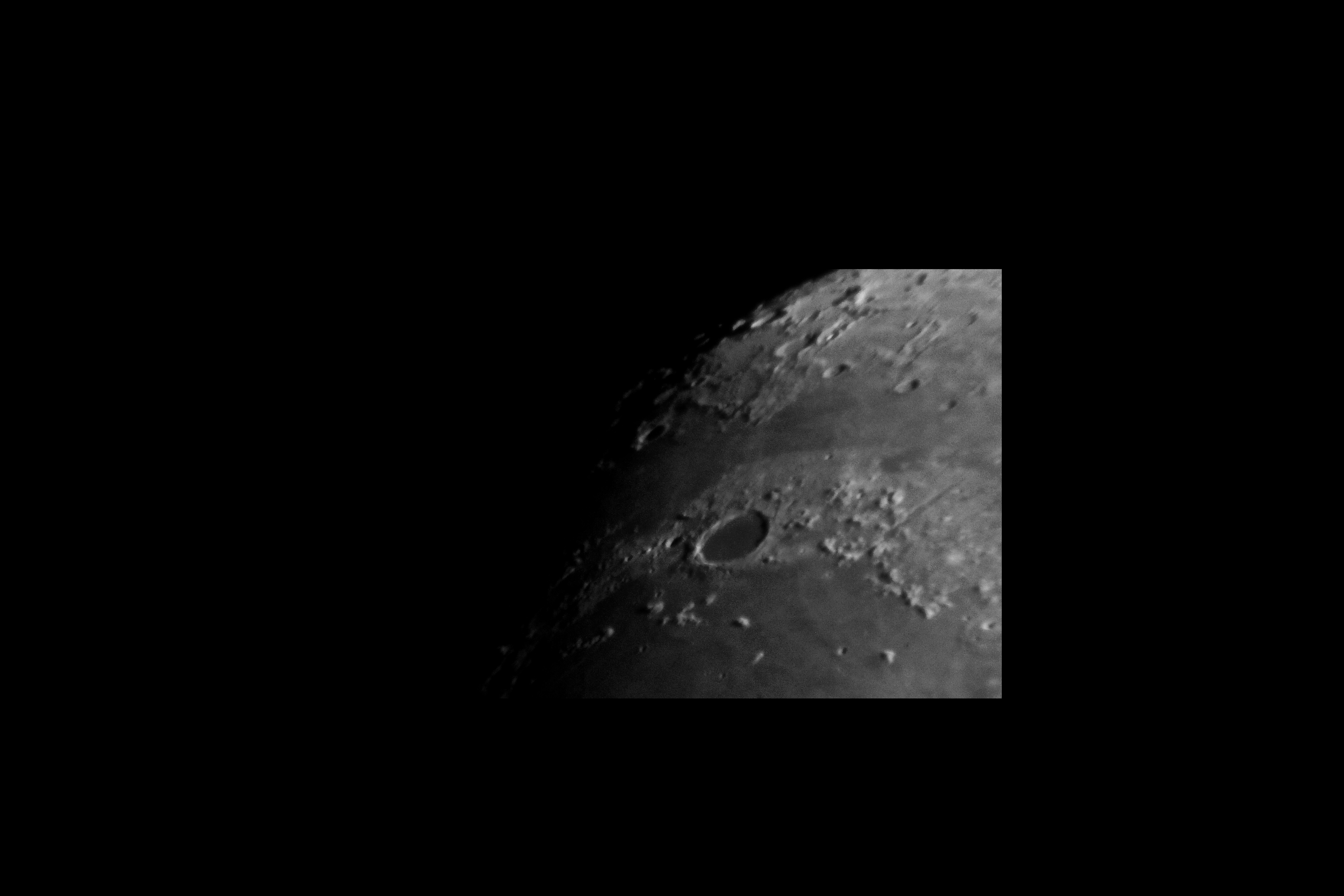 Der große Krater Plato befindet sich nördliches Mare Imbrium. Direkt nebenan schließen sich die Mondes Alpes mit dem Alpental an.