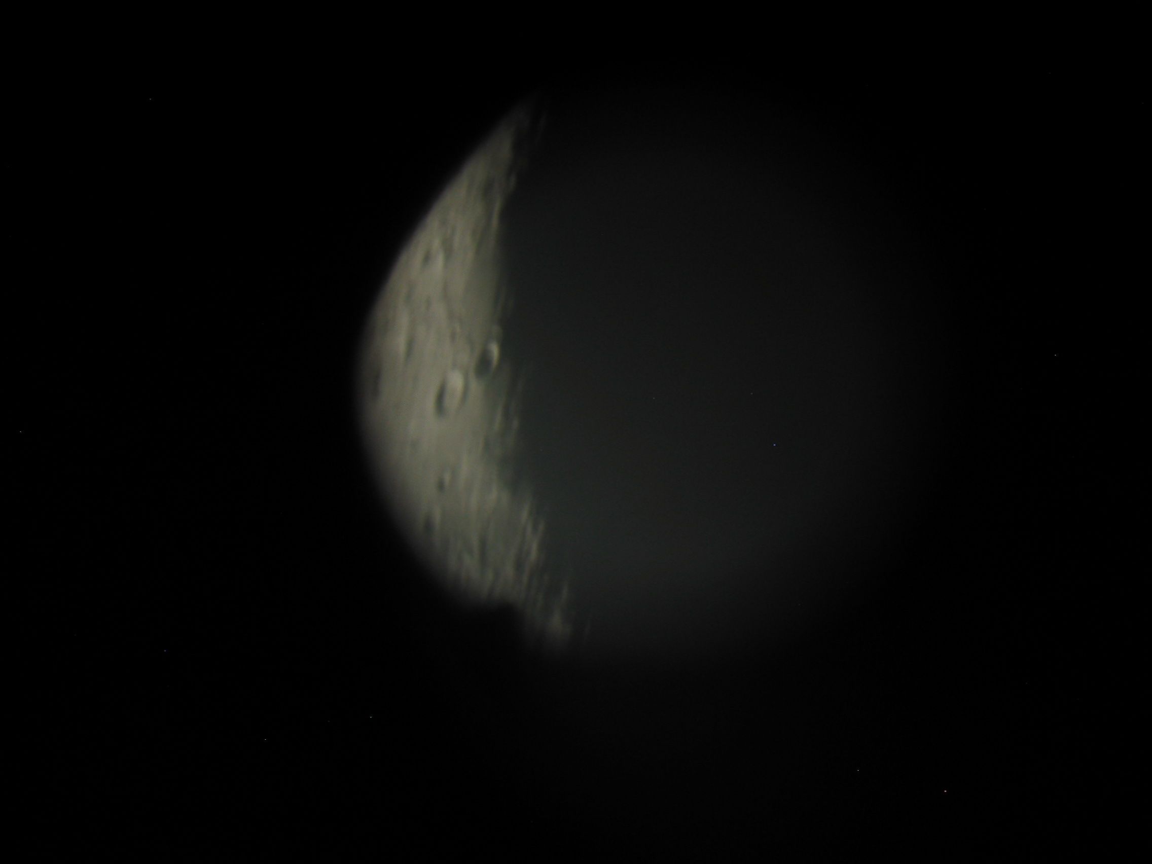 Dieses Bild war einer meiner ersten Versuche mit Kamera und Teleskop.Da ich keinen Adaper habe fotografierte ich bisdahin nur mit Kamera.