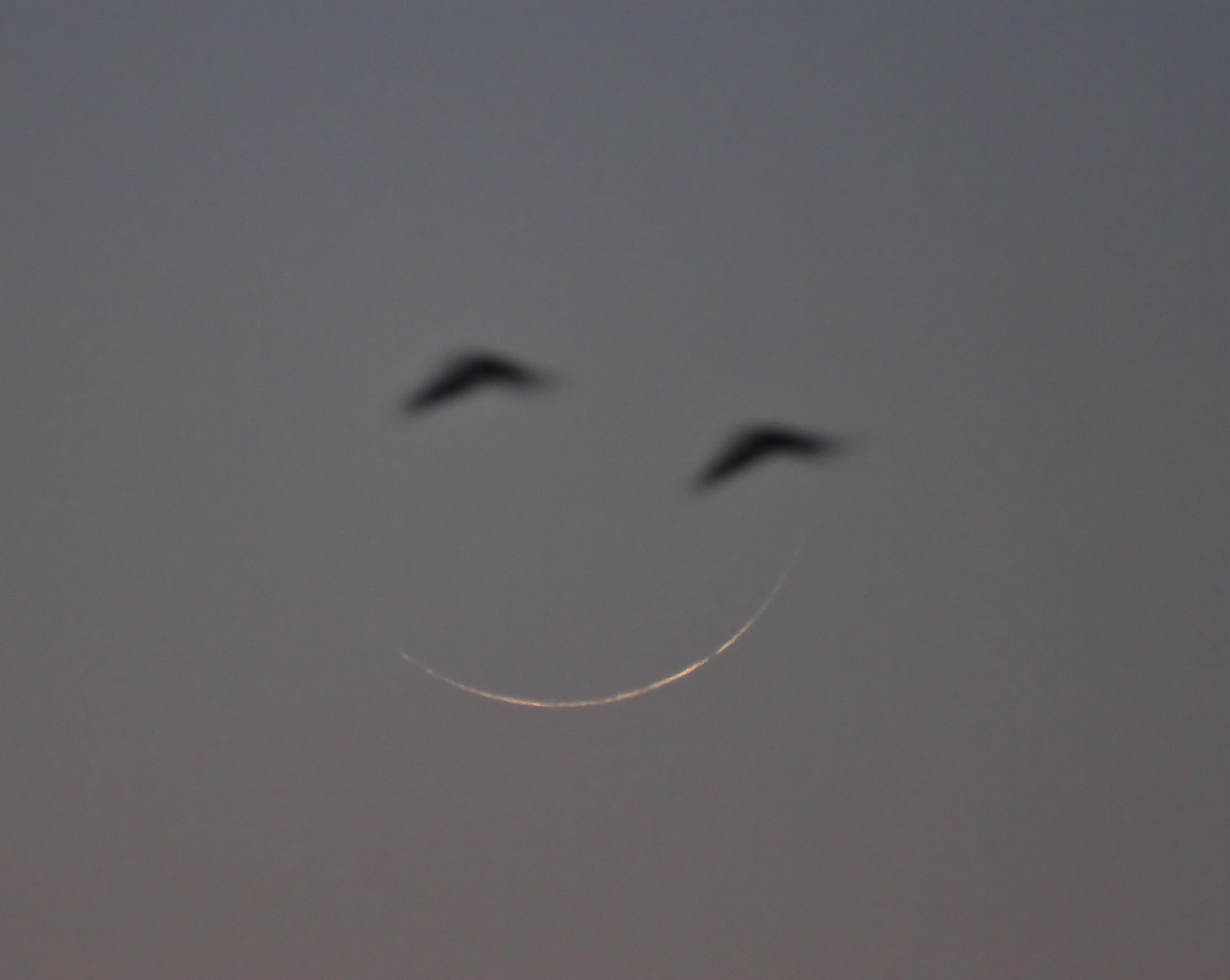 Bevor Komet PanSTARRs sichtbar wurde richtete ich meine Kamera auf die schmale Mondsichel. Rund um meinen Beobachtungsstandort, den Kirchturm der Vicelinkirche Neumünster, zogen mehrere Vogelschwärme ihre Bahnen. Dabei entstand unter anderem dieses Bild.