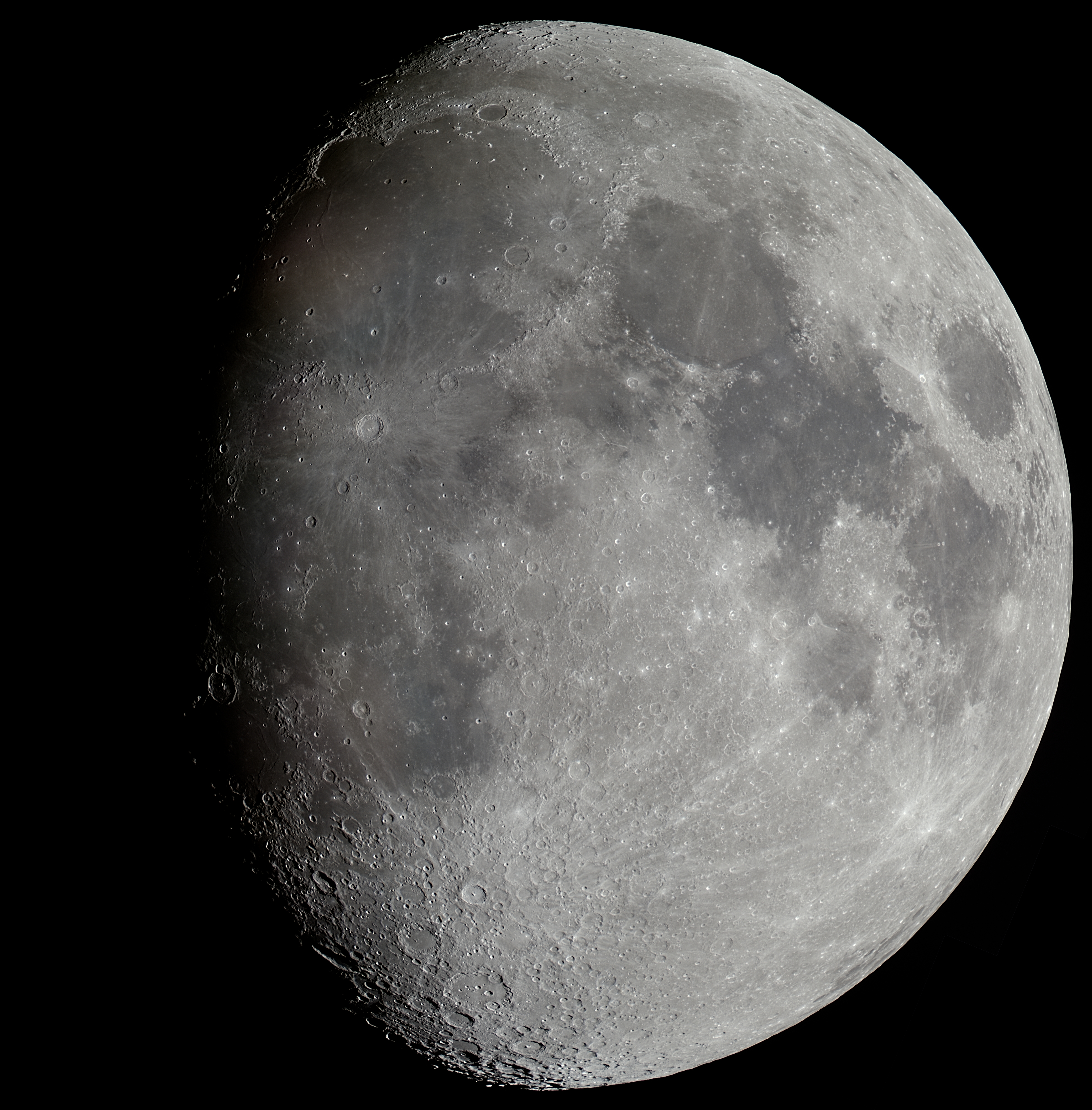 Diese Mondaufnahme ist am 15. April 2019 zwischen 23:05 und 23:25 Uhr entstanden. 27 Detailaufnahmen mit je 1000 Frames. Je 250 Frames gestacked, dann als Panorama zusammengefügt und nachbearbeitet.