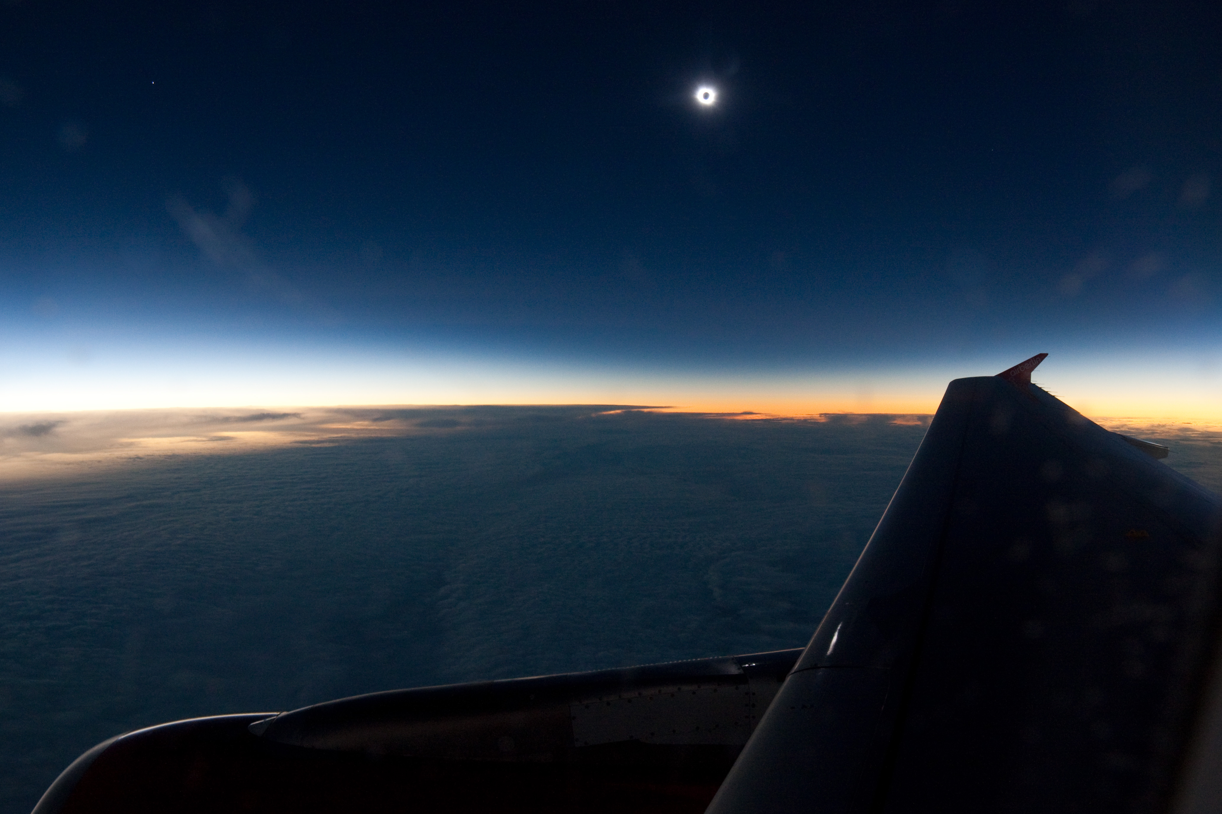 Mondschatten bei der SoFi 2015, aufgenommen auf dem Sonderflug von Eclipse-Reisen ab Zürich in die Totalitätszone nördlich der Färöer-Inseln