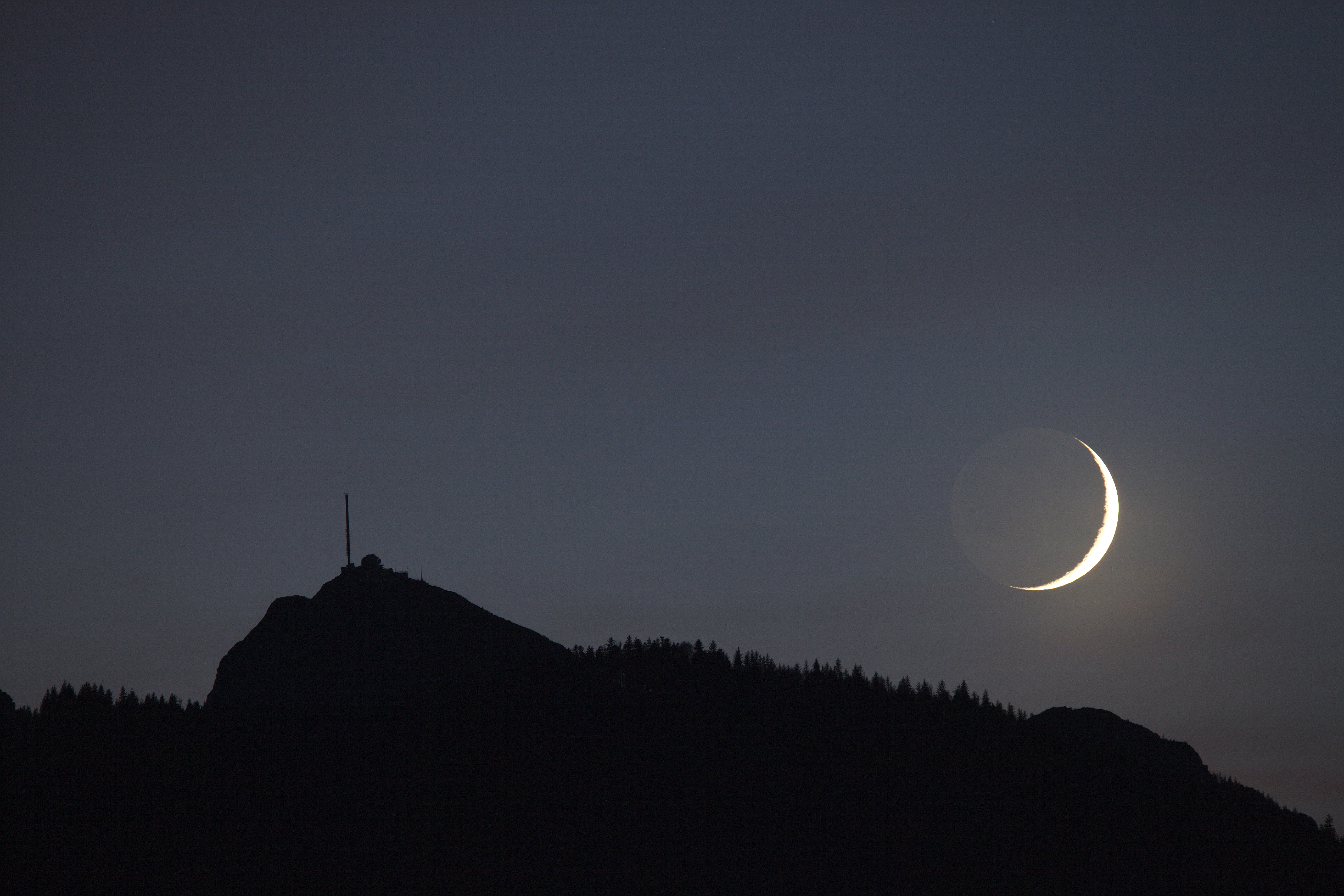 Leserbilder Astronomie: Mondsichel am Wendelsteinobservatorium