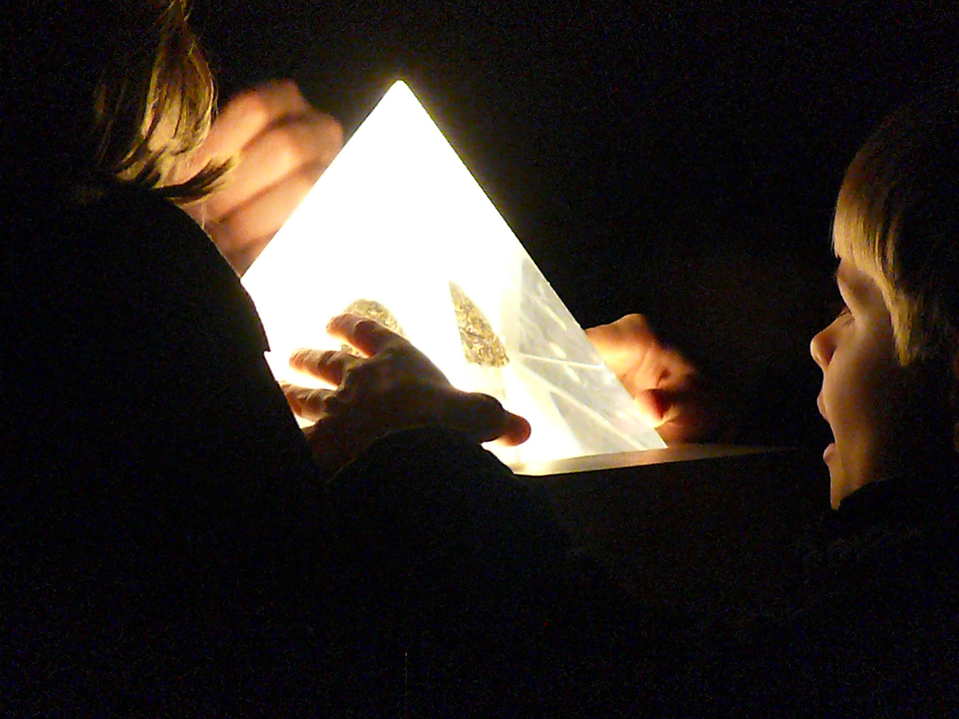 Die vierfache Spiegelung entsteht allein durch die Brechungen innerhalb der kleinen transparenten Pyramide, in die das Fragment vom "Great Scott" eingegossen ist; keines der Bilder ist nachbearbeitet.
