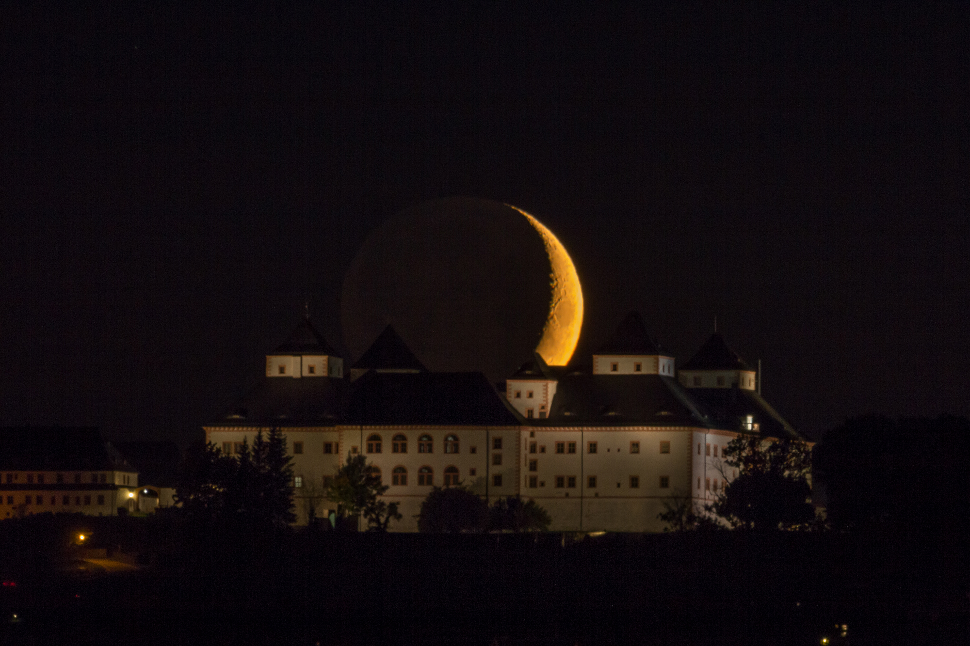 Leserbilder Astronomie: Monduntergang über der Augustusburg
