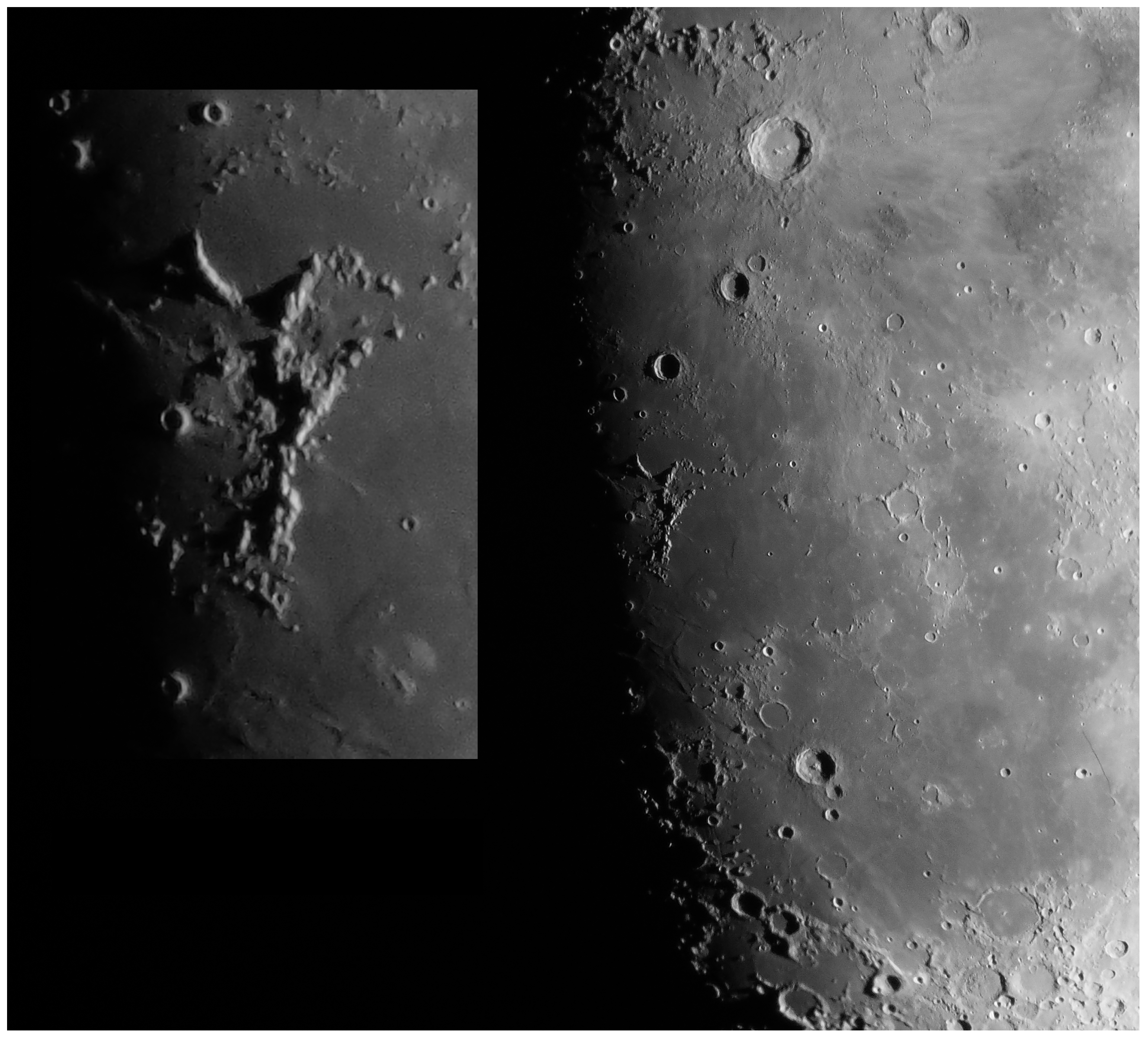 Die Montes Riphaeus, auch Riphäengebirge genannt, liegen westlich des kleinen Mare Cognitum. Am schönsten lassen sich die Montes Riphaeus direkt am Terminator beobachten, weil dann die Schattenwürfe besonders beindruckend sind.