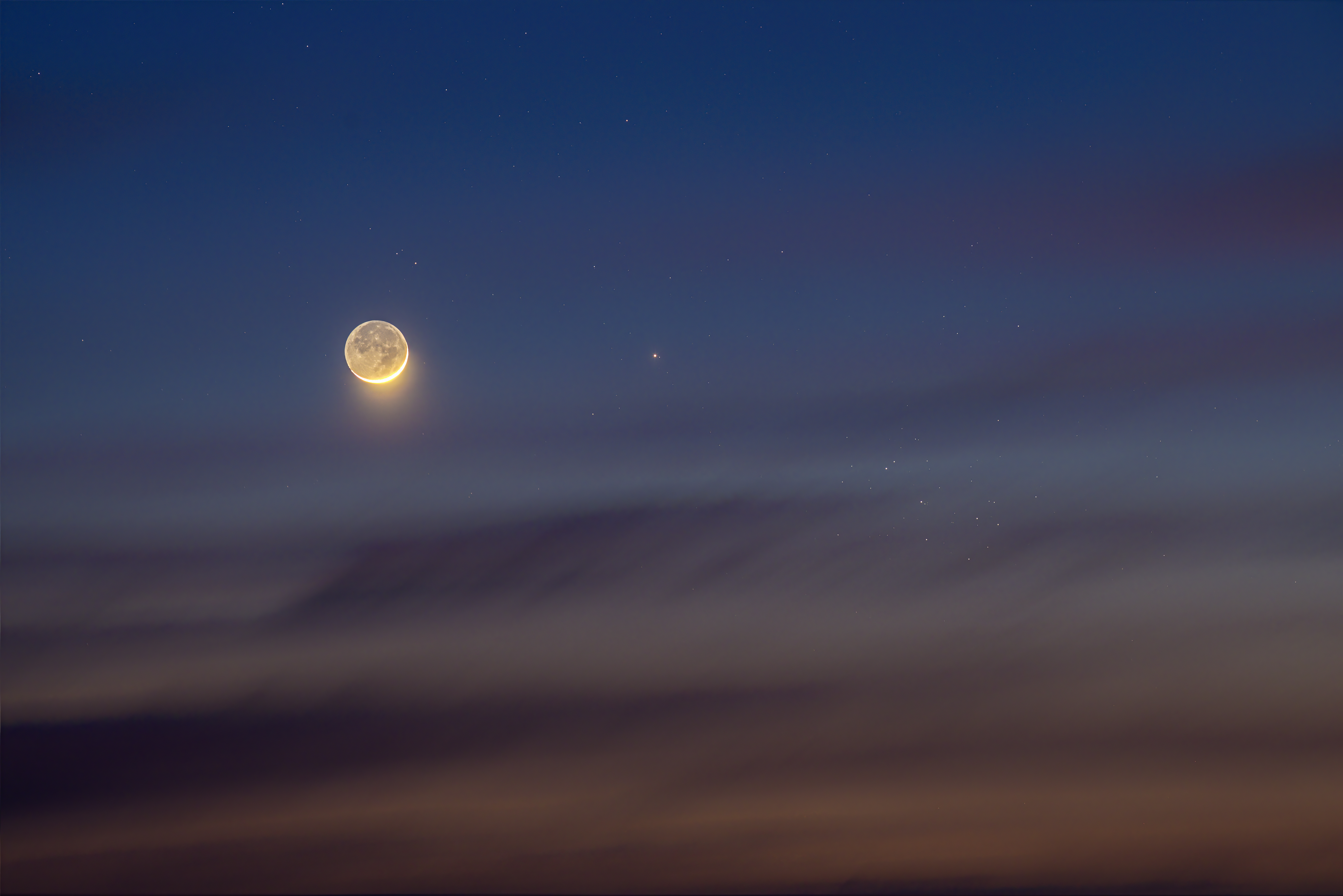 The Moon meets Mercury and the Pleiades.