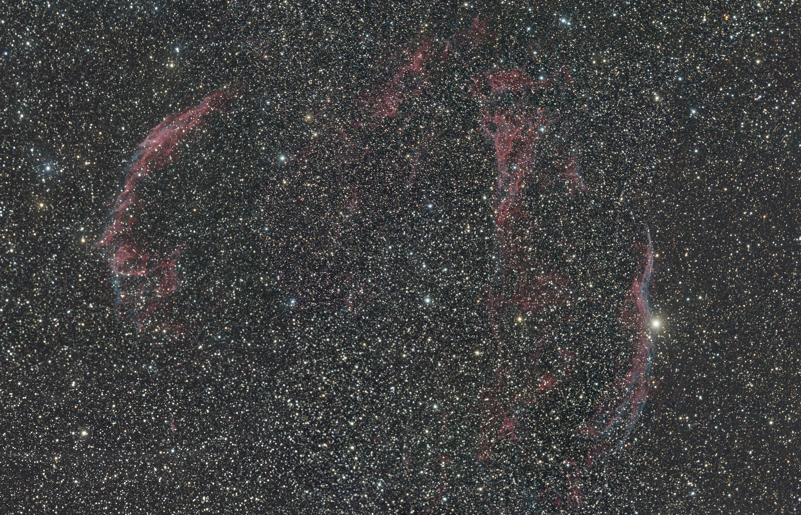 Im August und September 2013 habe ich diesen Supernova-Überrest im Sternbild Schwan in insgesamt vier Nächten 14 Stunden belichtet. Aus vier Summenbildern wurde dann das Mosaik erstellt.