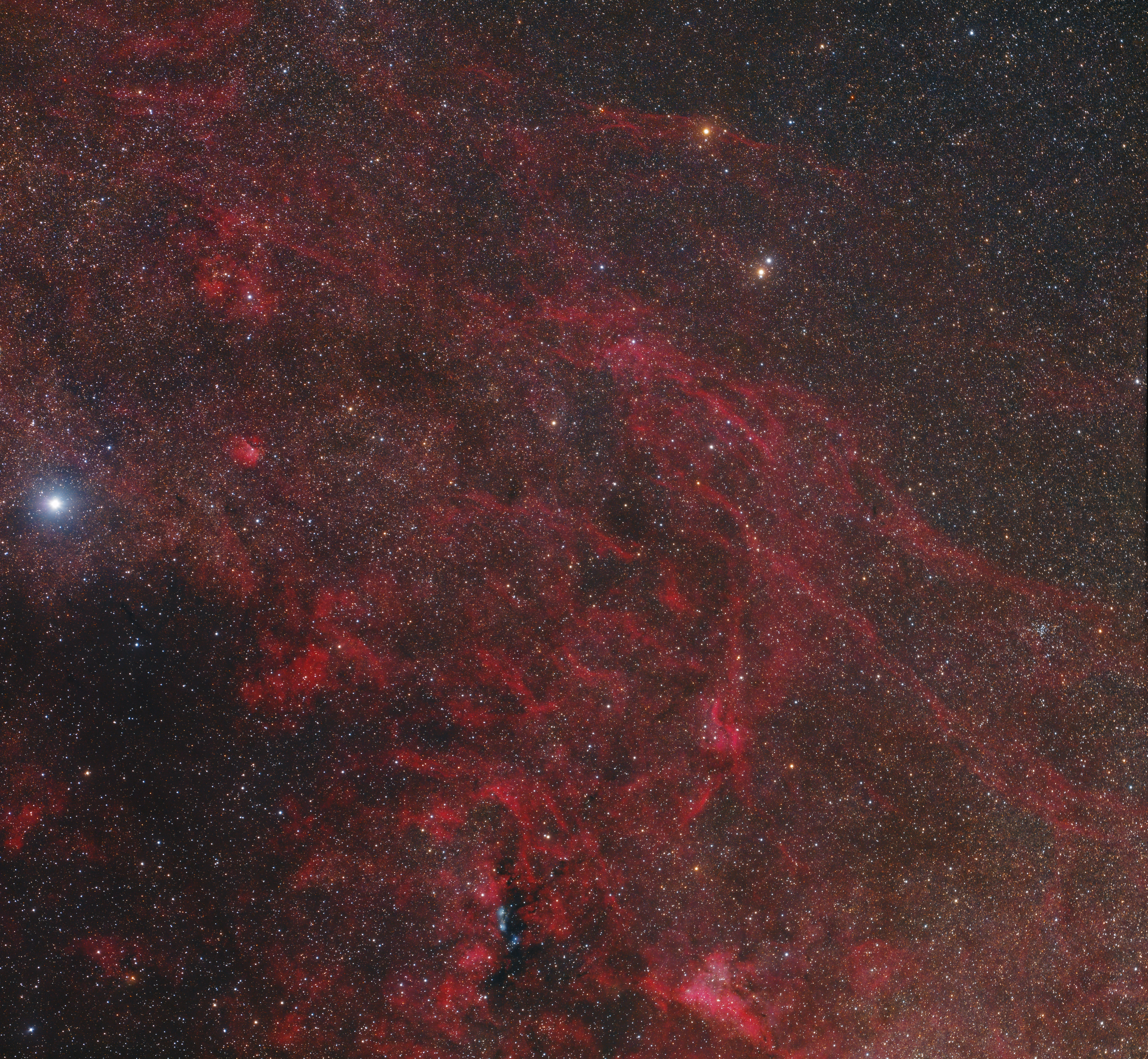 Vom Hauptstern Deneb im Schwan ausgehend finden sich nach rechts zahlreiche helle Nebel aus dem LBN Katalog. Auffällig ist auch der »Propellernebel« DWB111 oder Simeis 57. Das Mosaik besteht aus zwei Feldern mit einer Canon EOS 6Da bei 250 mm Brennweite.