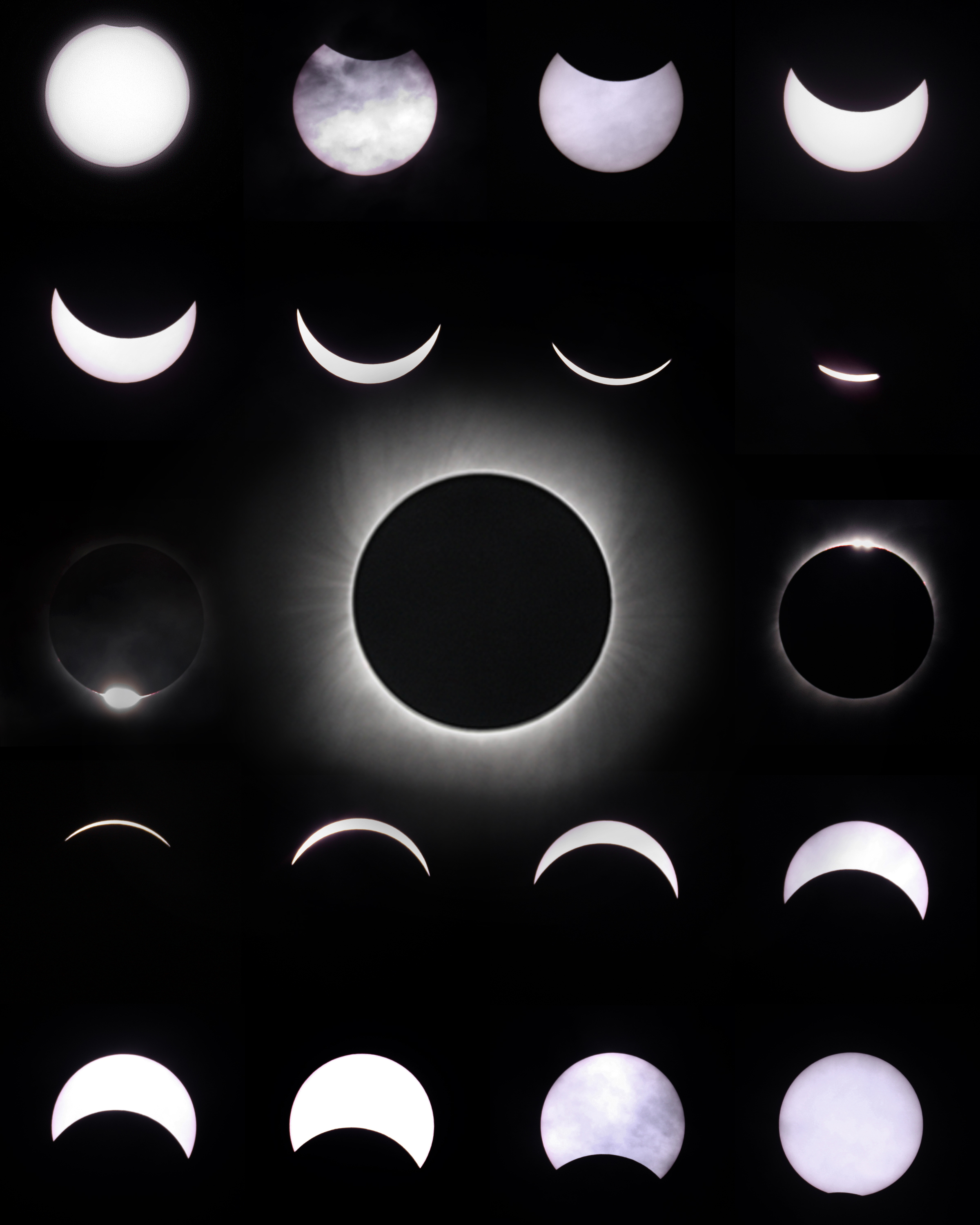 Mosaik der Sonnenfinsternis vom 22.7.2009 in der Nähe von Wuhan. Eine 13-tägige Reise von astronomie.de. Trotz leichter Bewölkung war die Finsternis in voller Länge beobachtbar.