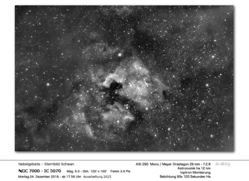 | Belichtungszeit | Integrstion 90x 120 Sekunden 12nm Ha |