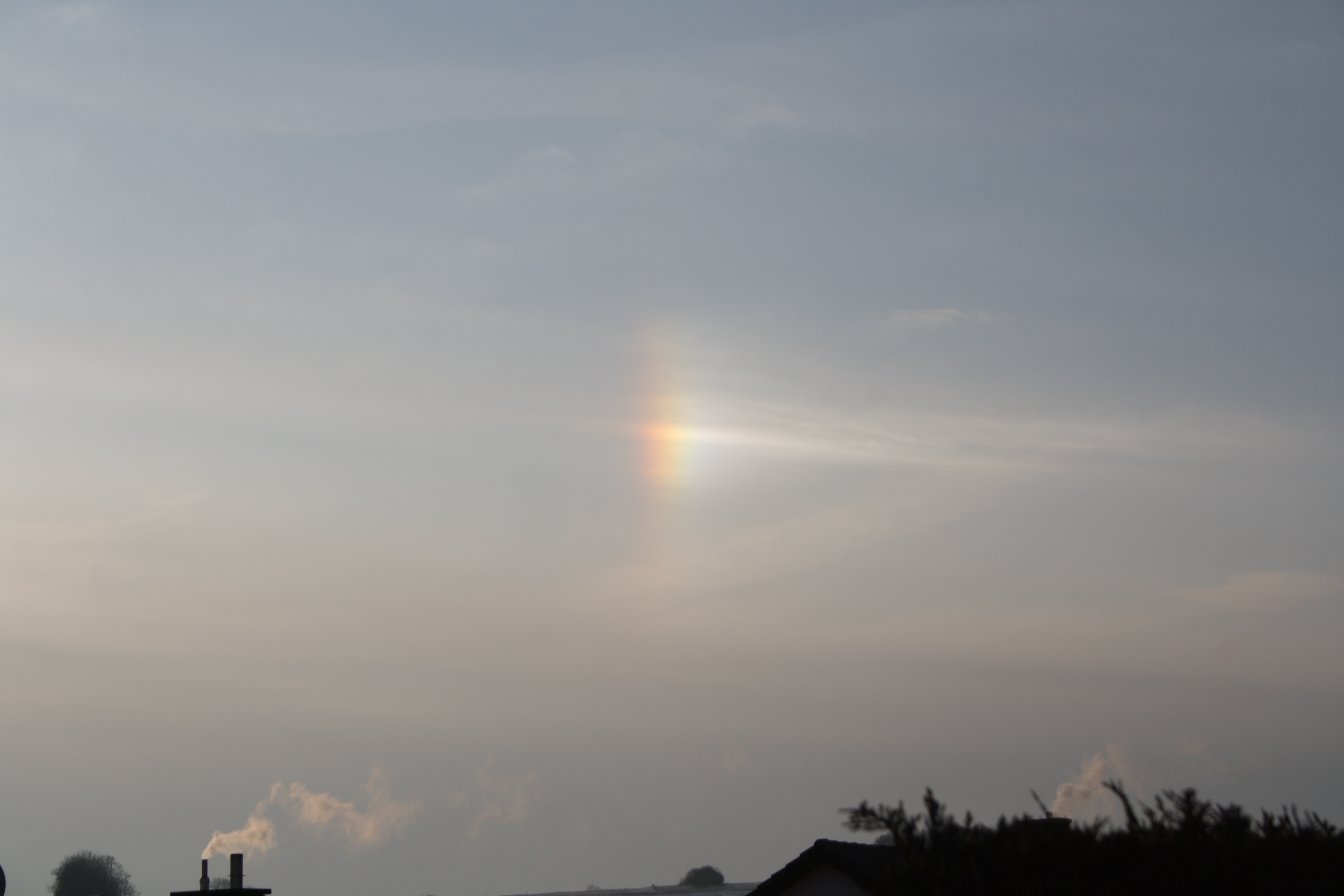 Heute morgen gab es einige Haloerscheinungen. Eine davon ist diese rechte Nebensonne.