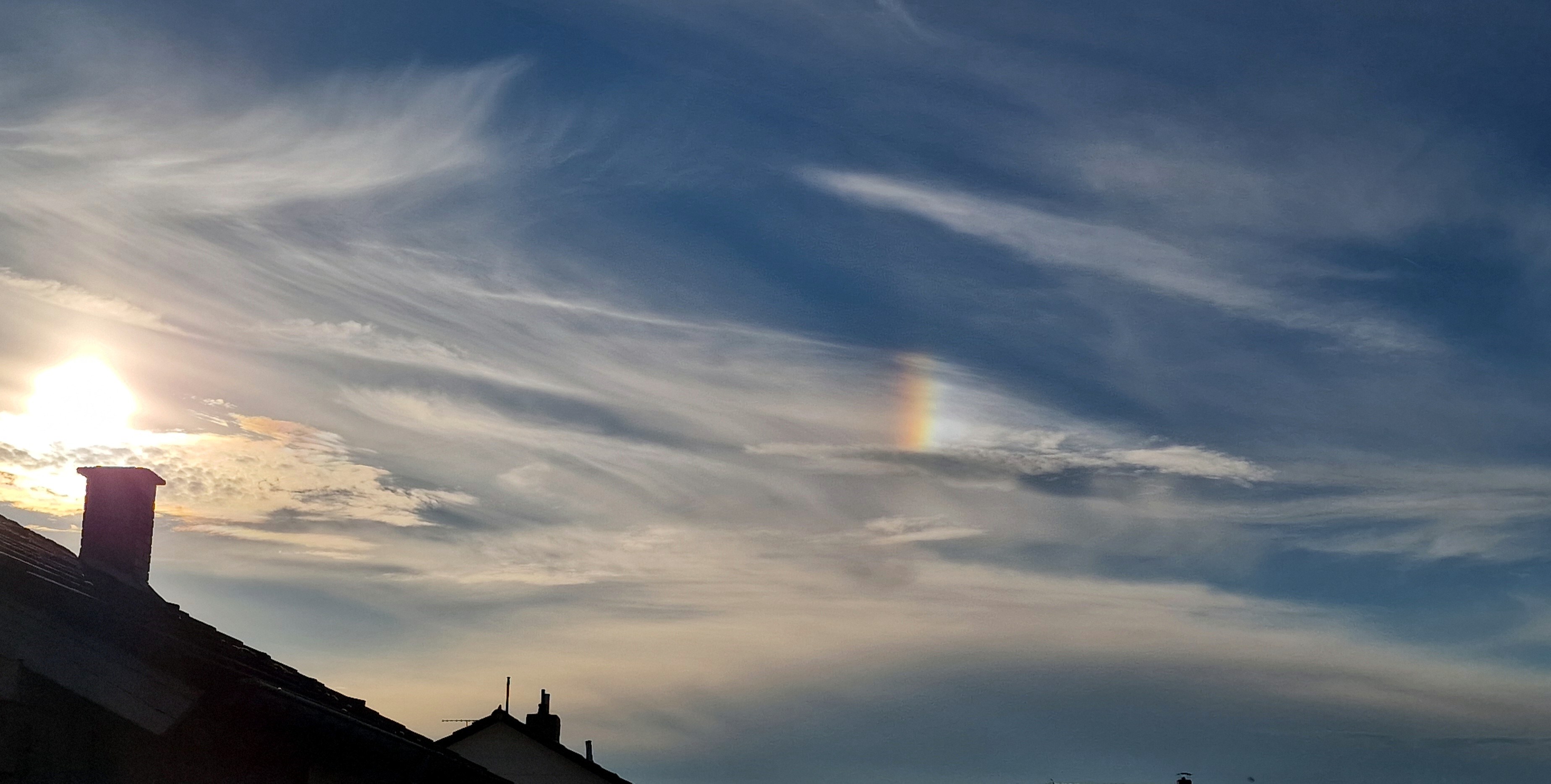 Anbei ein Foto von einer Nebensonne. Diese wurde von mir bei schönsten Herbstwetter in meiner niederbayrischen Heimat Pilsting am 12. Oktober 2024 um 17:03 Uhr fotografiert.