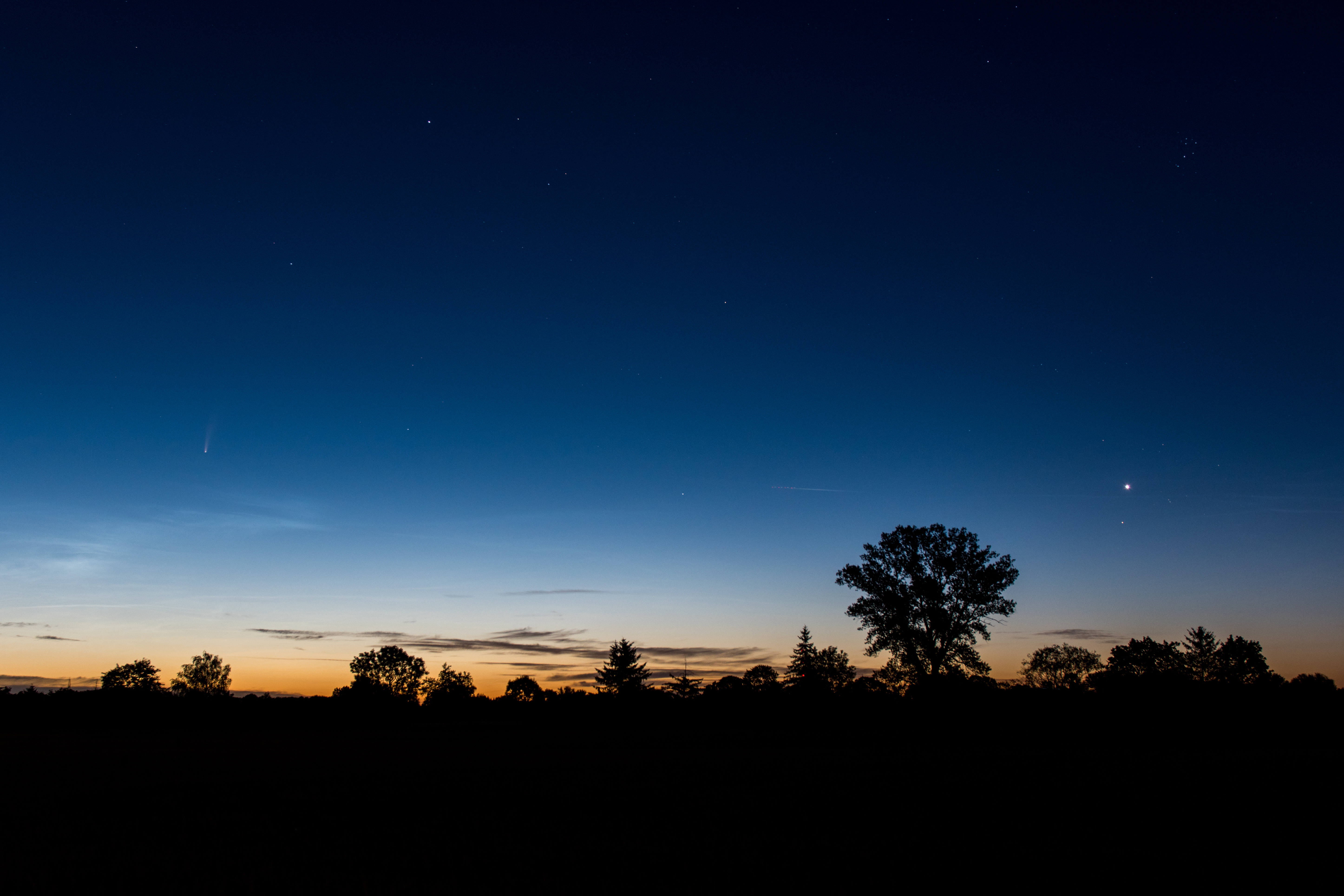 Am Morgen des 10. Juli 2020 bot sich ein sehr schöner Anblick des Kometen NEOWISE zusammen mit der Venus in den Hyaden.