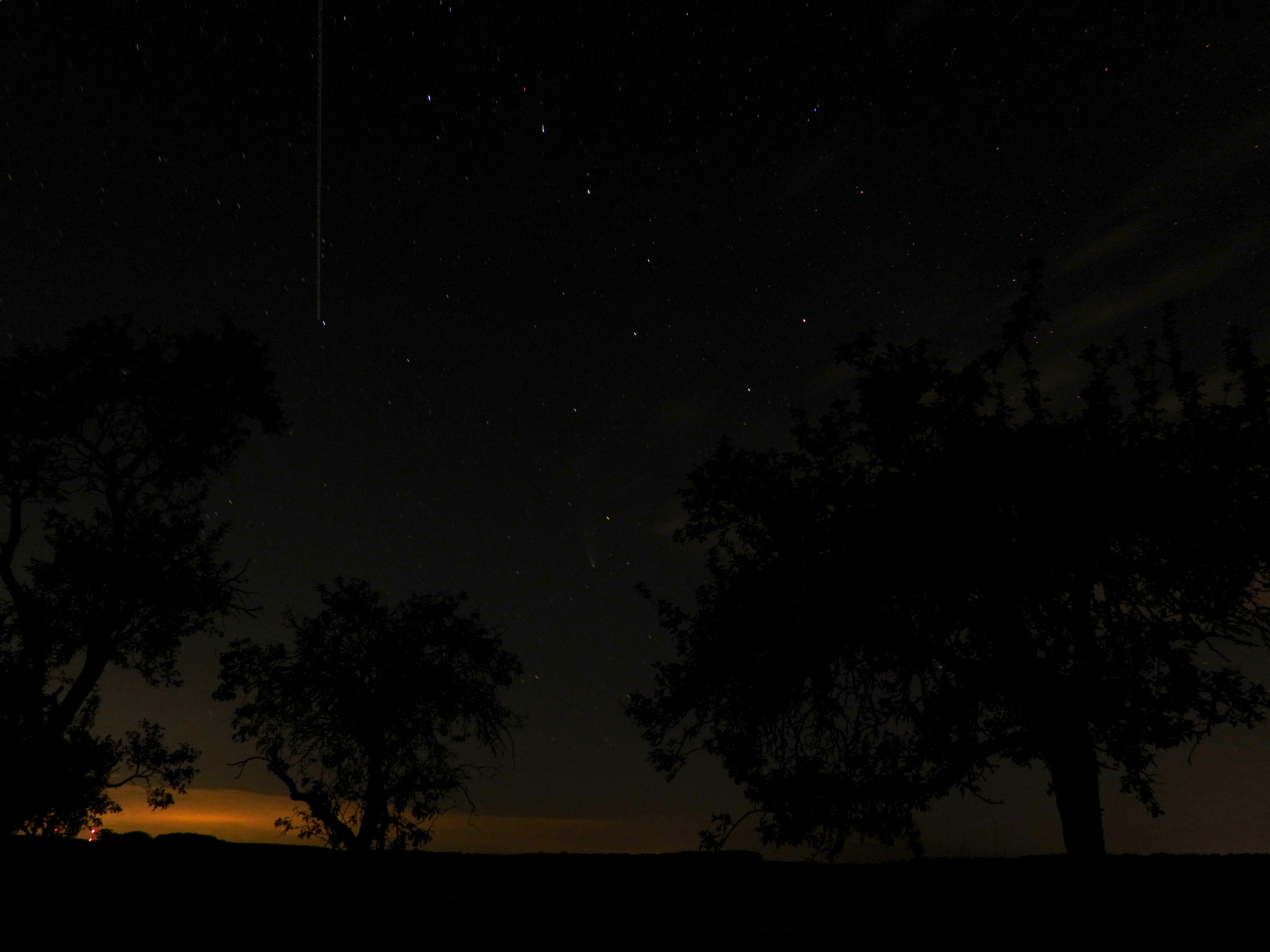 NEOWISE war am 24. Juli 2020 kurz vor Mitternacht nochmals schön am Nachthimmel zu sehen. Ein Flugzeug wurde auch noch erwischt bei dieser längeren Beichtung.