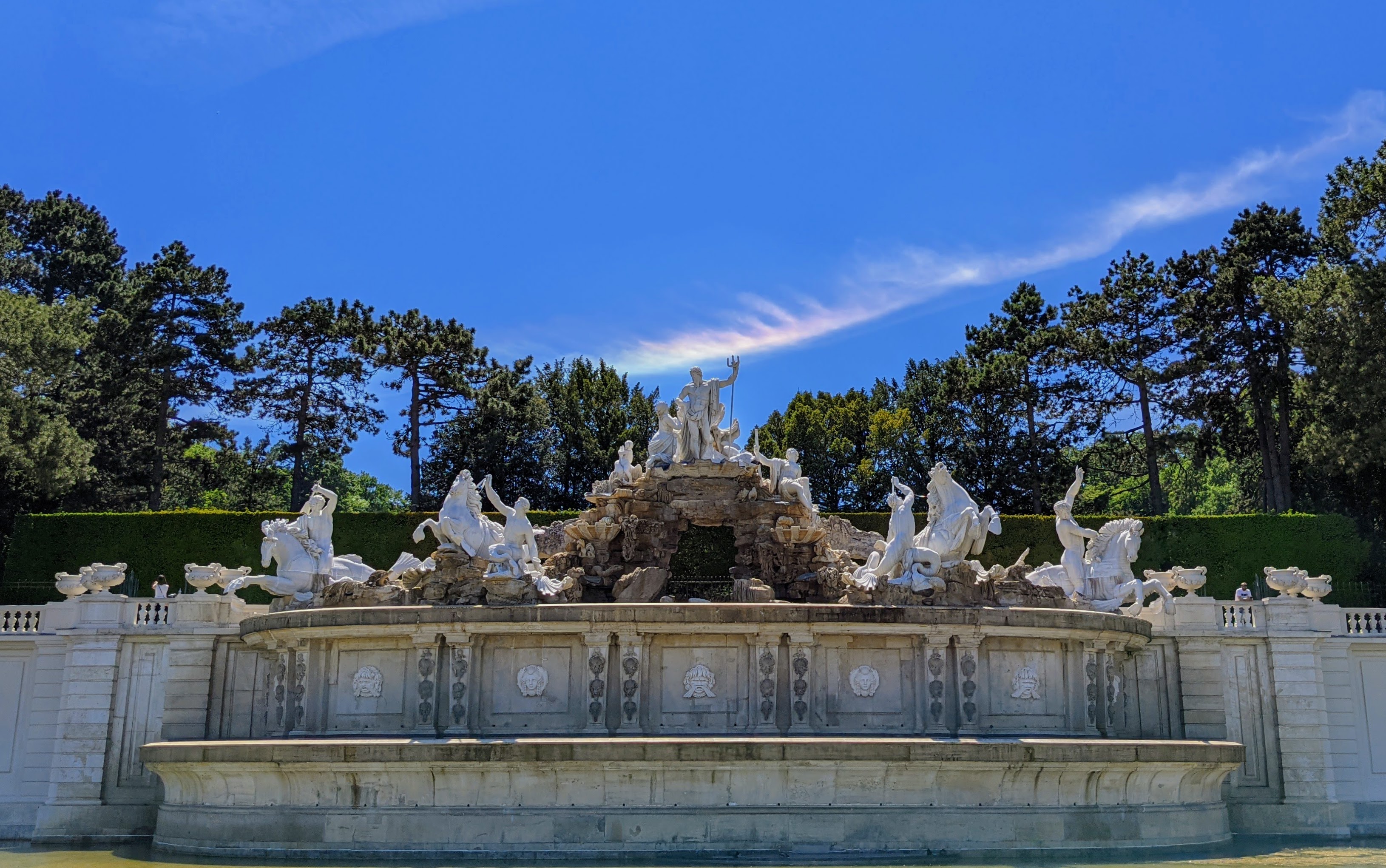 Zirkumhorizontalbogen über dem Neptunbrunnen im Schloss Schönbrunn, Wien.
