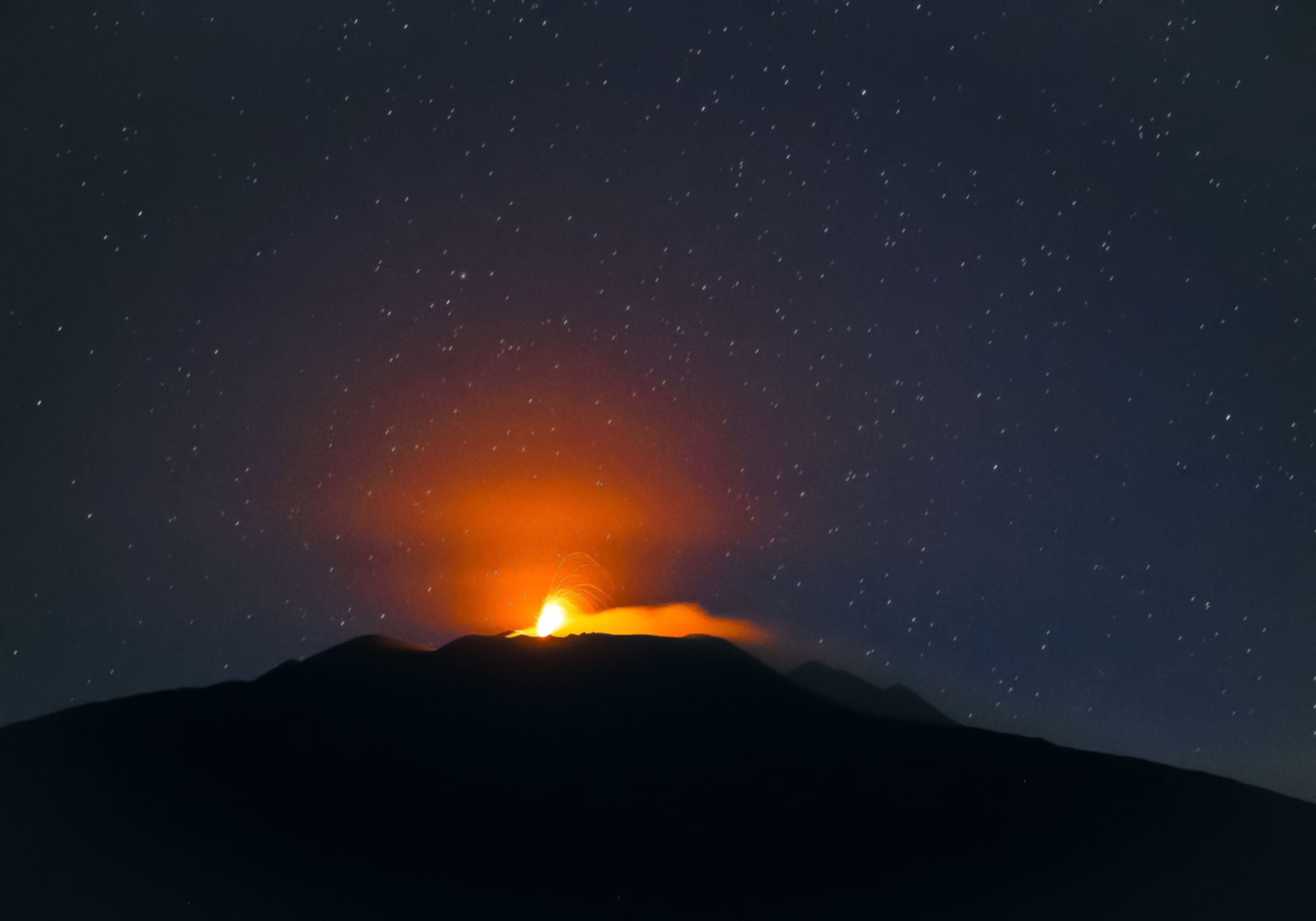 Leserbilder Astronomie: New Eruption with gas emission and light reflection volcano Etna - Sicily