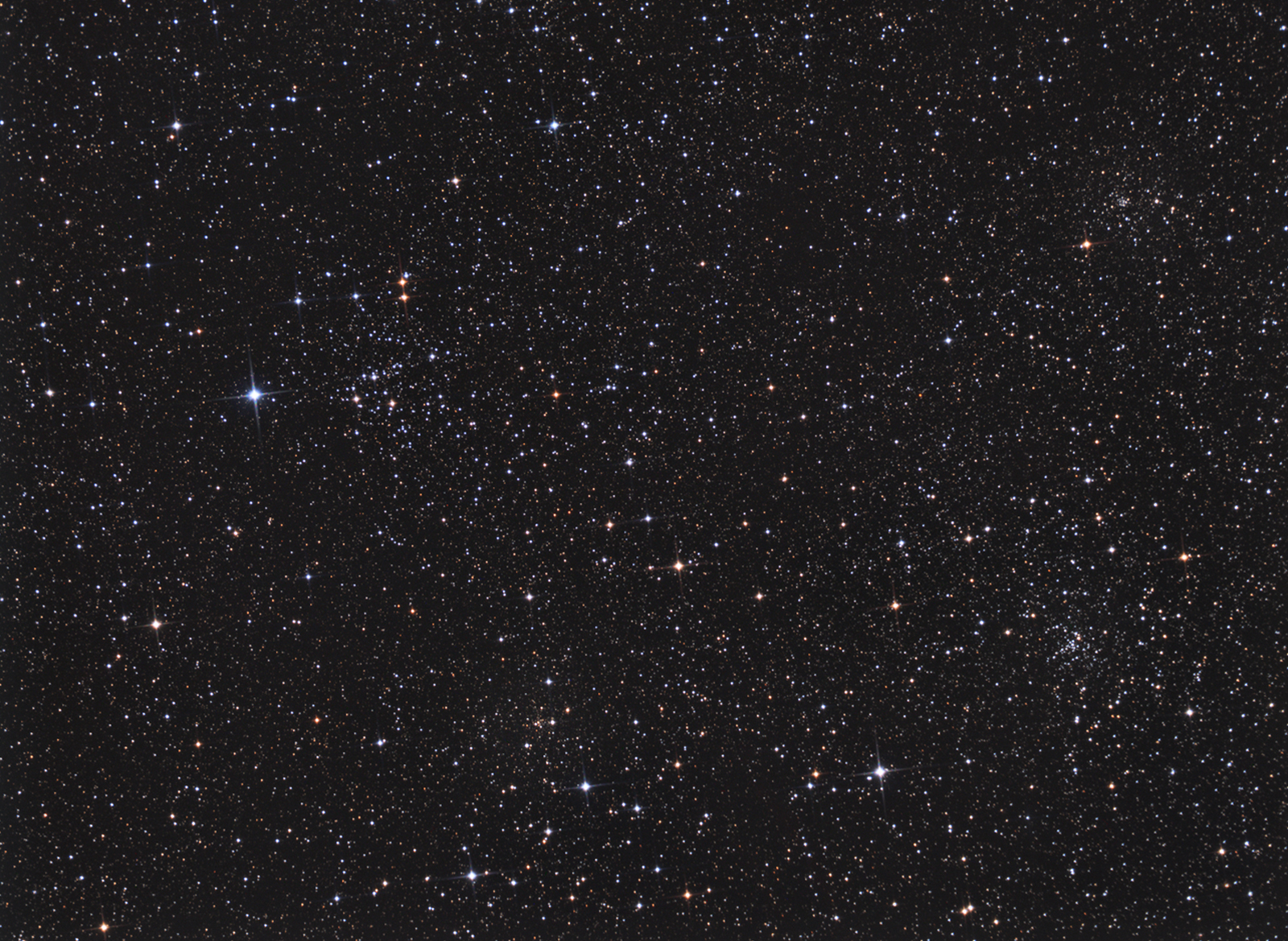 NGC 103 und NGC 129 sind zwei offene Sternhaufen im Sternbild Kassiopeia. Mit auf dem Bild sind NGC 136 (rechts oben), sowie Berkeley 2 (unten). Weitere Daten: http://www.galaxyphoto.de/ngc103ngc129_I.htm