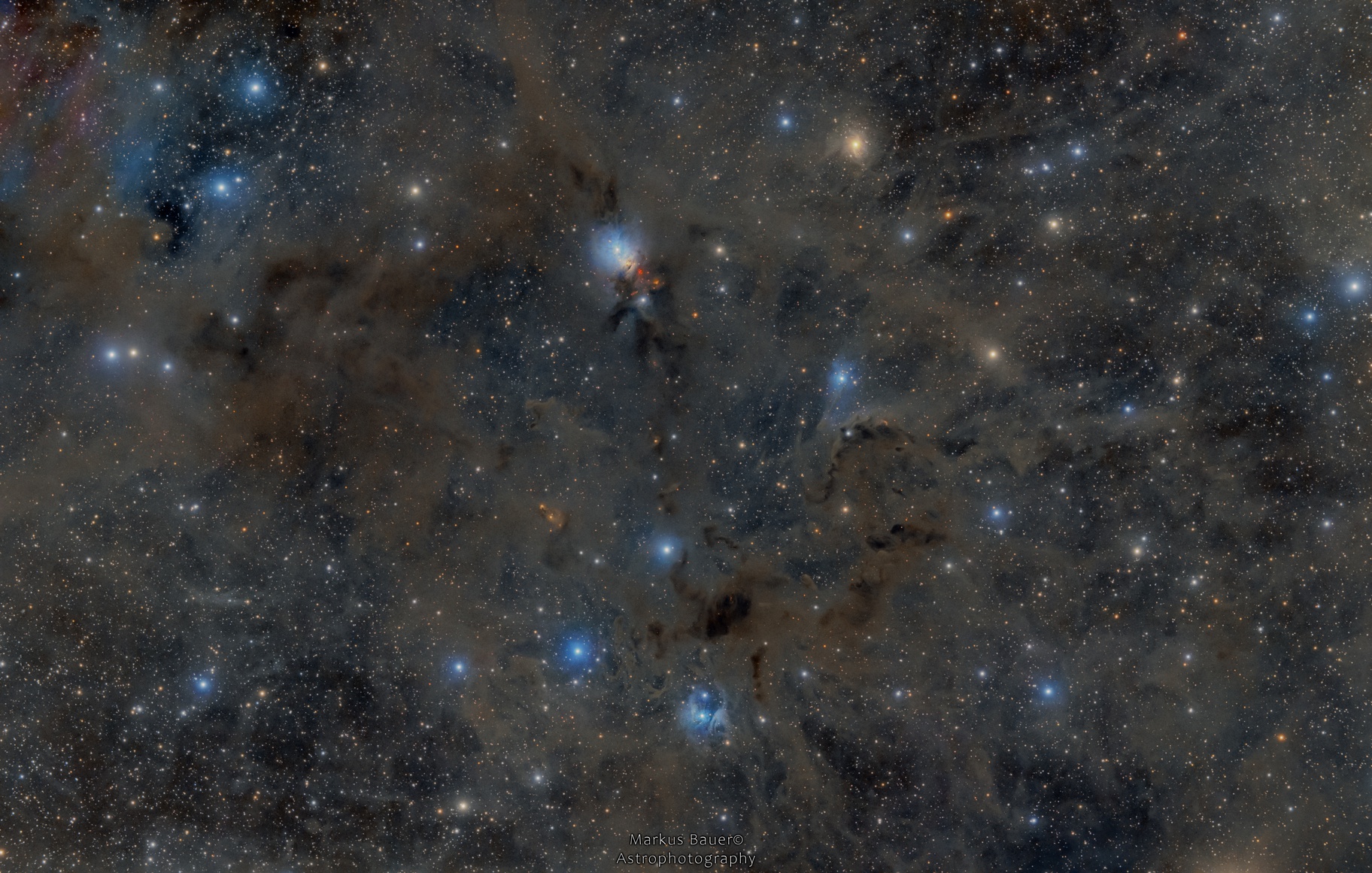 Dieses Bild zeigt NGC 1333, einen Reflexionsnebel im Sternbild Perseus. Es handelt sich hier um ein großes Sternentstehungsgebiet. Außen herum befinden sich allerhand Dunkelwolken, die ich auf diesem "Widefield" der Region unbedingt ablichten wollte.