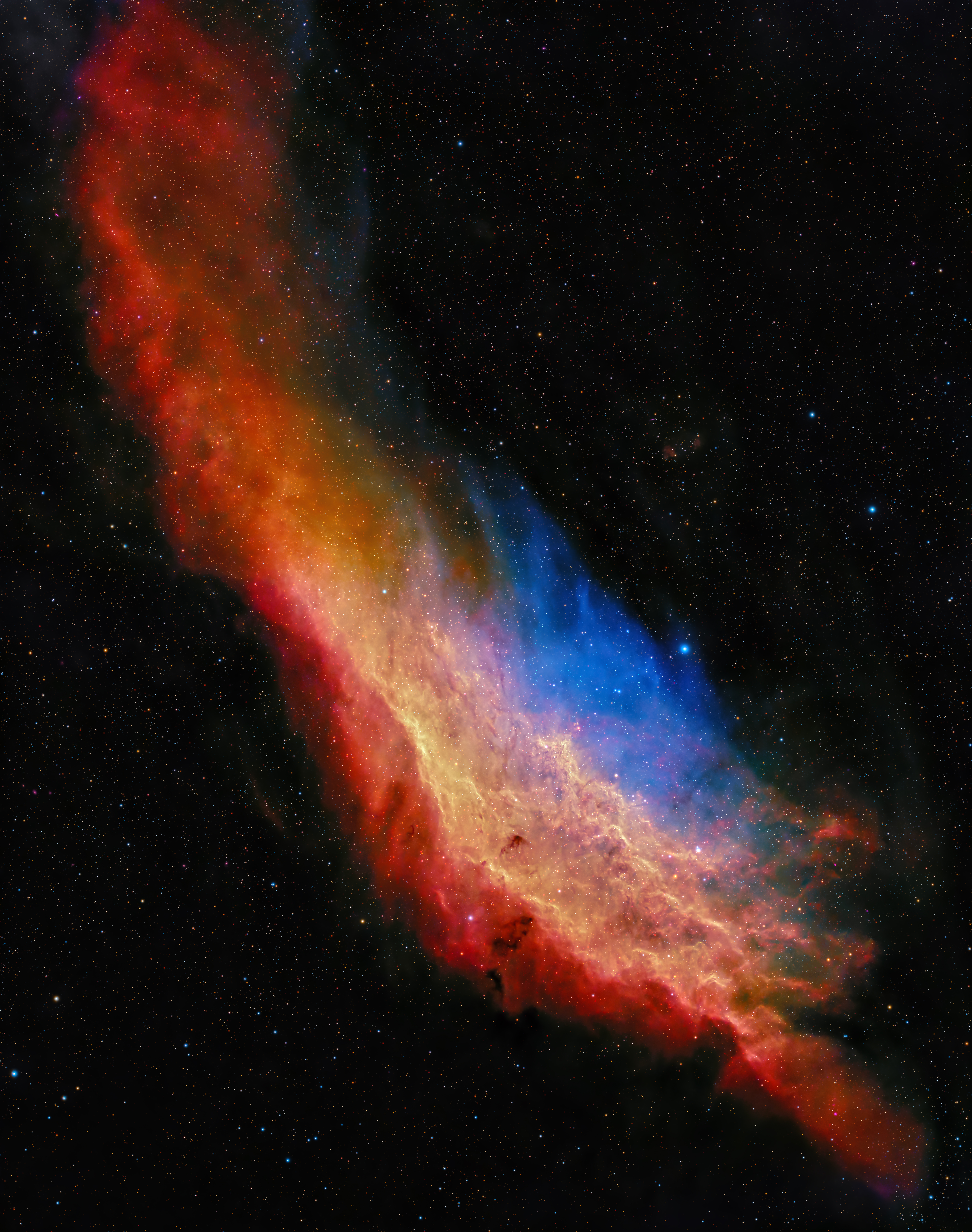 The California nebula (NGC 1499) is an emission nebula located in the constellation Perseus. Its name comes from its resemblance to the outline of the US state of California. 2 panels mosaic