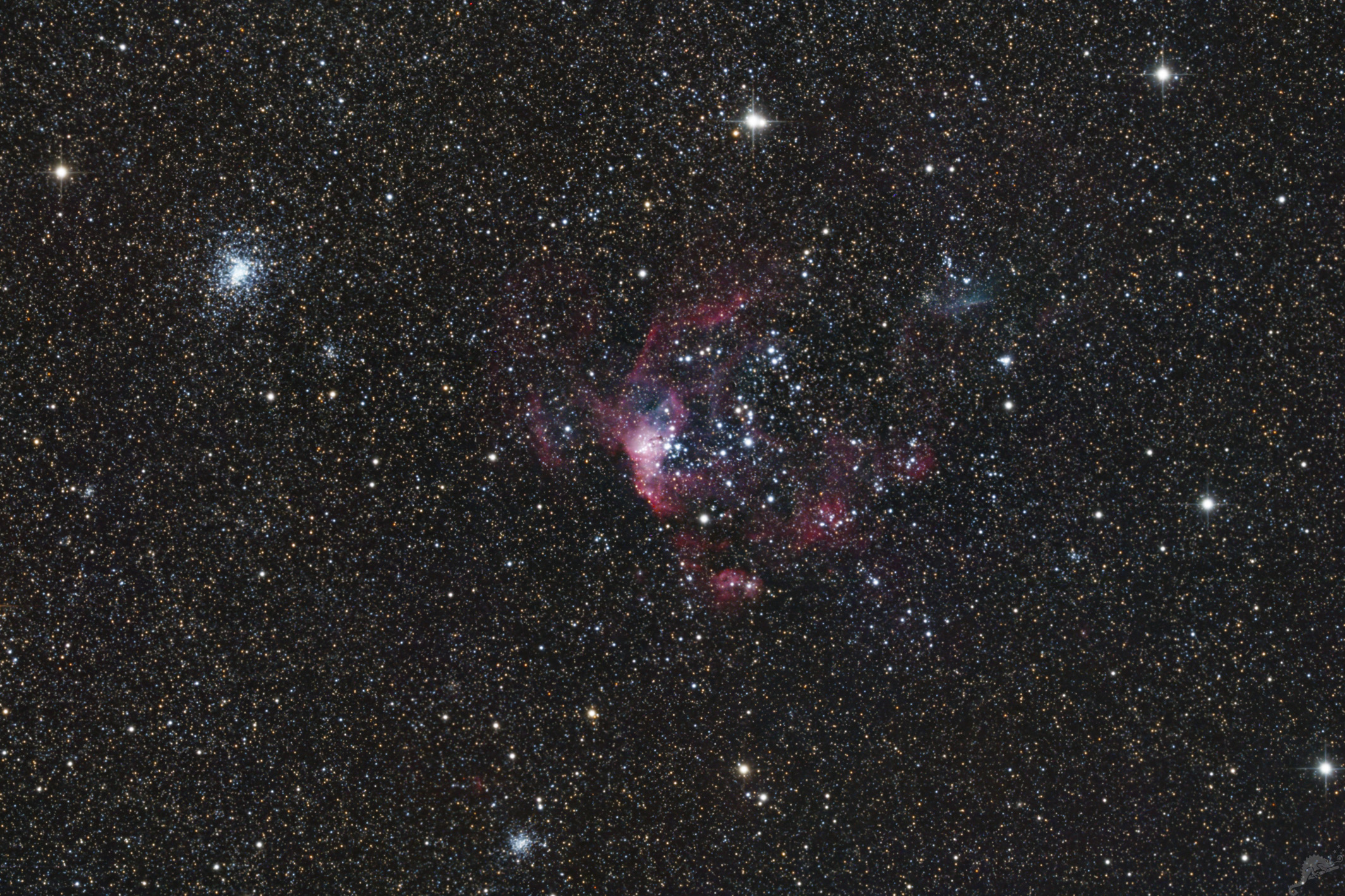 Im südlichen Teil der Großen Magellanschen Wolke sind die Nebelgebiete nicht ganz so dicht gesät wie im Norden. Aber auch hier gibt es große offene Sternhaufen mit umgebenden Nebeln - hier in Nachbarschaft zu NGC 2031, einem Kugelsternhaufen.