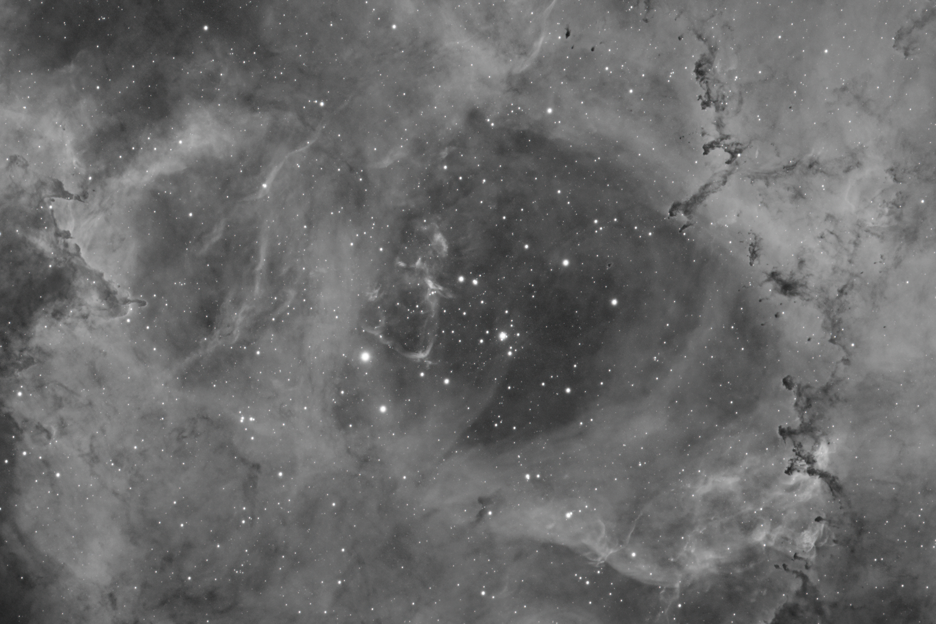 Der Kernbereich des Rosettennebels im Sternbild Einhorn, der offene Sternhaufen NGC 2244 im H-Alpha-Licht vom 21. Februar 2021