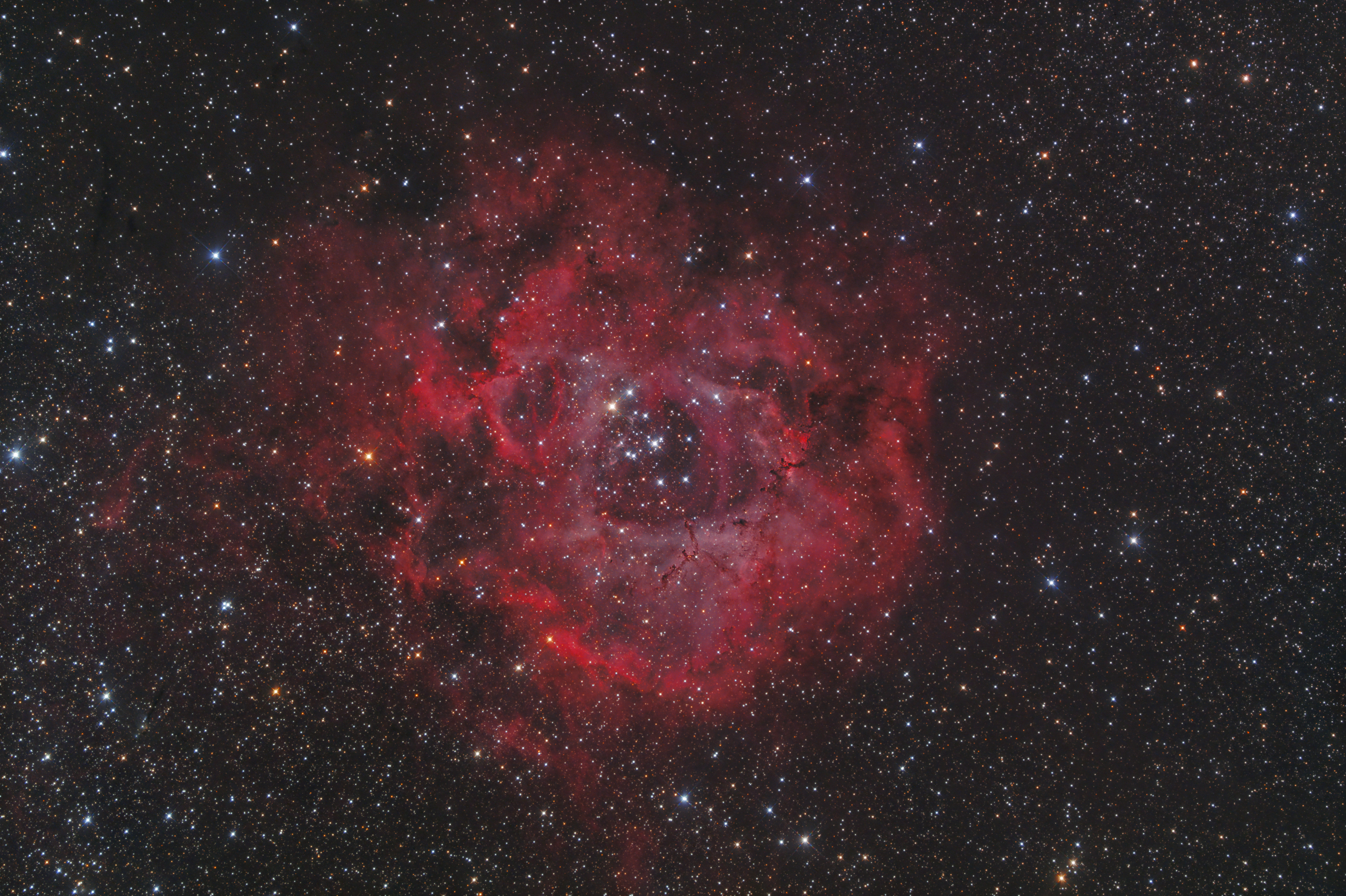 Der Rosettennebel ist ein diffuser Emissionsnebel mit eingebettetem offenen Sternhaufen NGC 2244. Einzelne Teile des Nebels tragen die Bezeichnungen NGC 2237, 2238 und 2246.