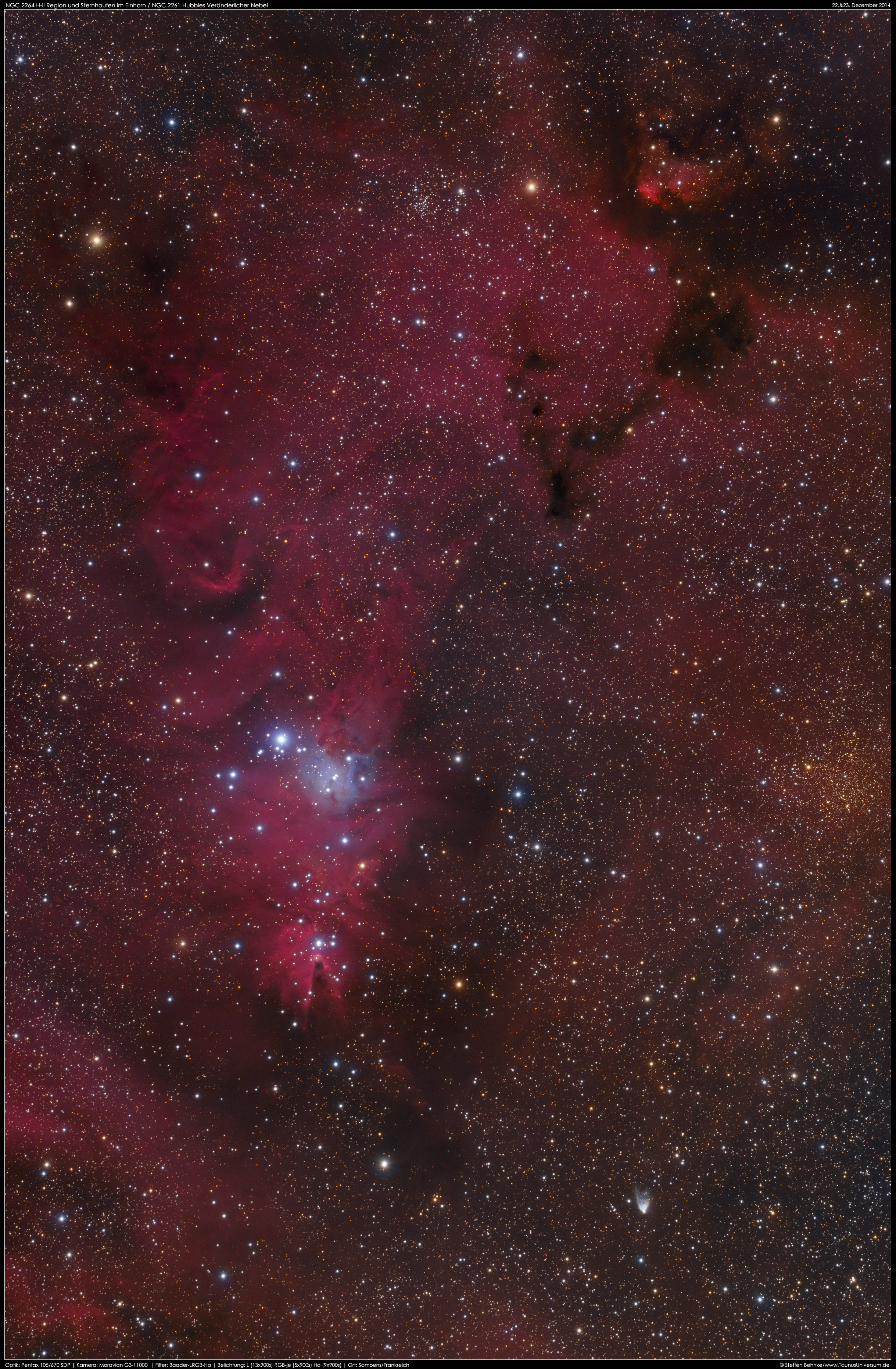 | Objekt | NGC 2264, NGC 2261 Hubbles Variabler Nebel, Konusnebel, Weihnachtsbaum-Sternhaufen NGC 2259, Trumpler 5 |